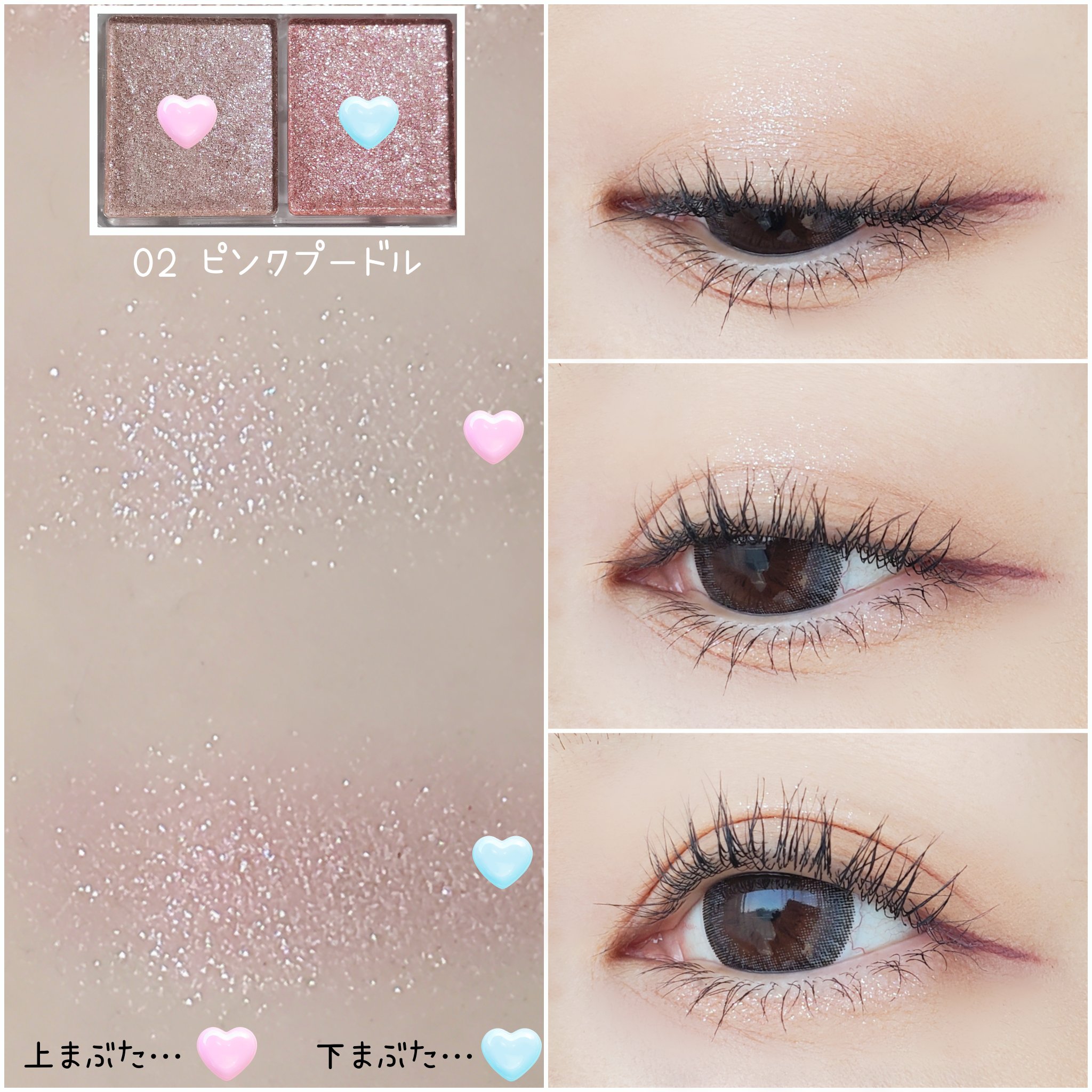 - ※03は2025年11月下旬よりロフト・プラザで先行発売。2026年3月下旬発売予定で2026年4月以降定番導入予定となります。 自分の気持ちを上げる♪ キャンメイク史上最もキラキラ!?ご褒美級ラメシャドウ✨ 高輝度、高密着! ラメ好きさんには是非使ってほしい✨ まるで発光しているかのように輝く大粒ラメアイシャドウです。 他のアイシャドウの上から重ねても濁らない 透明度の高いラメで、美しい輝きが楽しめます。 まるでラメの膜が張るようにぴたっと密着! ラメ飛びしにくく、キレイな仕上がりが長時間続きます。 【同系色の2色入り】 左:カラーレスメイクや、淡いアイシャドウに合わせやすいラメ 右:ほんのりベースカラーが発色する、華やかなカラーラメ