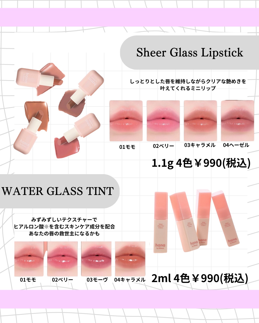 \限定300円OFF!7月はファミマに急げ💚🤍/🏷️hanabyhinceウォーターグラスティント|各990円(税込)|4色🉐(キャンペーン時価格→税込690円)あのhinceがファミマで買える!?と話題になったhanabyhinceのコンビ...