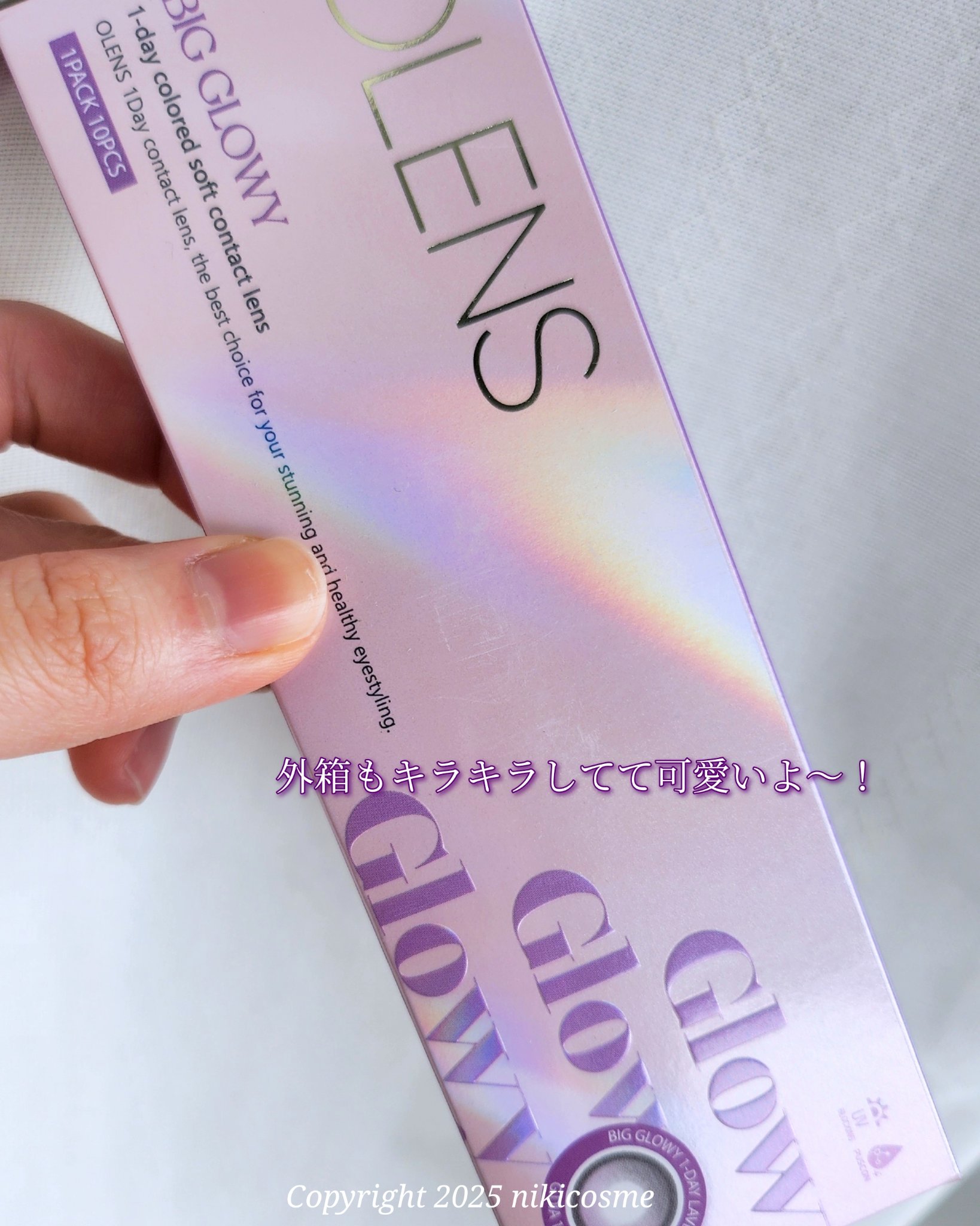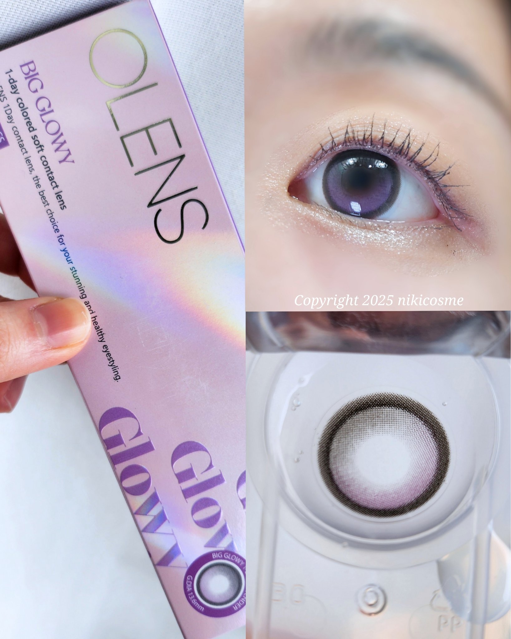 - 韓国カラコン業界の話題のブランド『OLENS(オーレンズ)』の日本正式承認商品シリーズ。世界中から注目を浴びるグループ「NewJeans (ニュージーンズ)」がイメージモデル。 日本でも人気のシリーズ『BigGlowy』から、瞳に溶け込むように馴染む甘く上品なラベンダーカラーが登場。 立体感を加える繊細なハイライターデザインに、くりくりな眼差しを表現する、くっきりフチでラブリーで愛嬌のある目元に。 深みのあるラベンダーカラー+太フチで、ガラス玉のようなツヤを放つミステリアスな瞳に。甘さも存在感もどちらも叶える惹きつけカラーです。 ■使い方 コンタクトレンズは高度管理医療機器です。必ず眼科医の処方に従って購入してください。 ■使用上の留意事項 コンタクトレンズは高度管理医療機器です。眼科医の指導に従い装用期間を厳守し、正しくお使いください。眼の定期検査を必ず受けてください。添付文書を必ず読み、取扱方法、装用時間を守って正しくお使いください。少しでも異常を感じたら、直ちに眼科医の検査を受けてください。