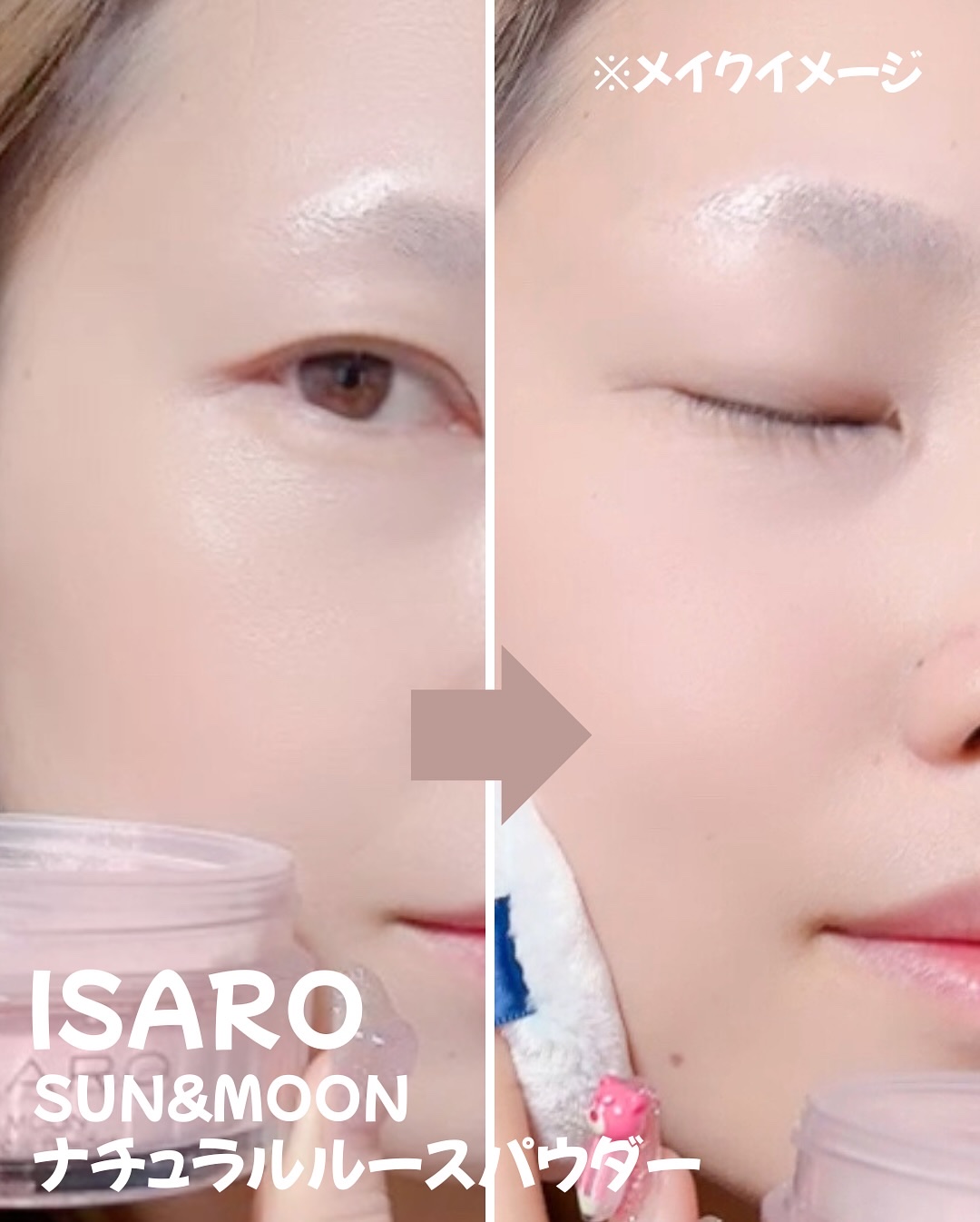ISAROのサン&ムーンシリーズはスキンケア発想のベースメイクとして生まれたブランド。メイクしている間も美容時間に♡ カラフルパウダーをぐるっと混ぜれば、肌にマッチする自然なカラーに早変わり! メイクの仕上げにサッとひと塗りすれば、ふわっとマットに仕上がる印象です!