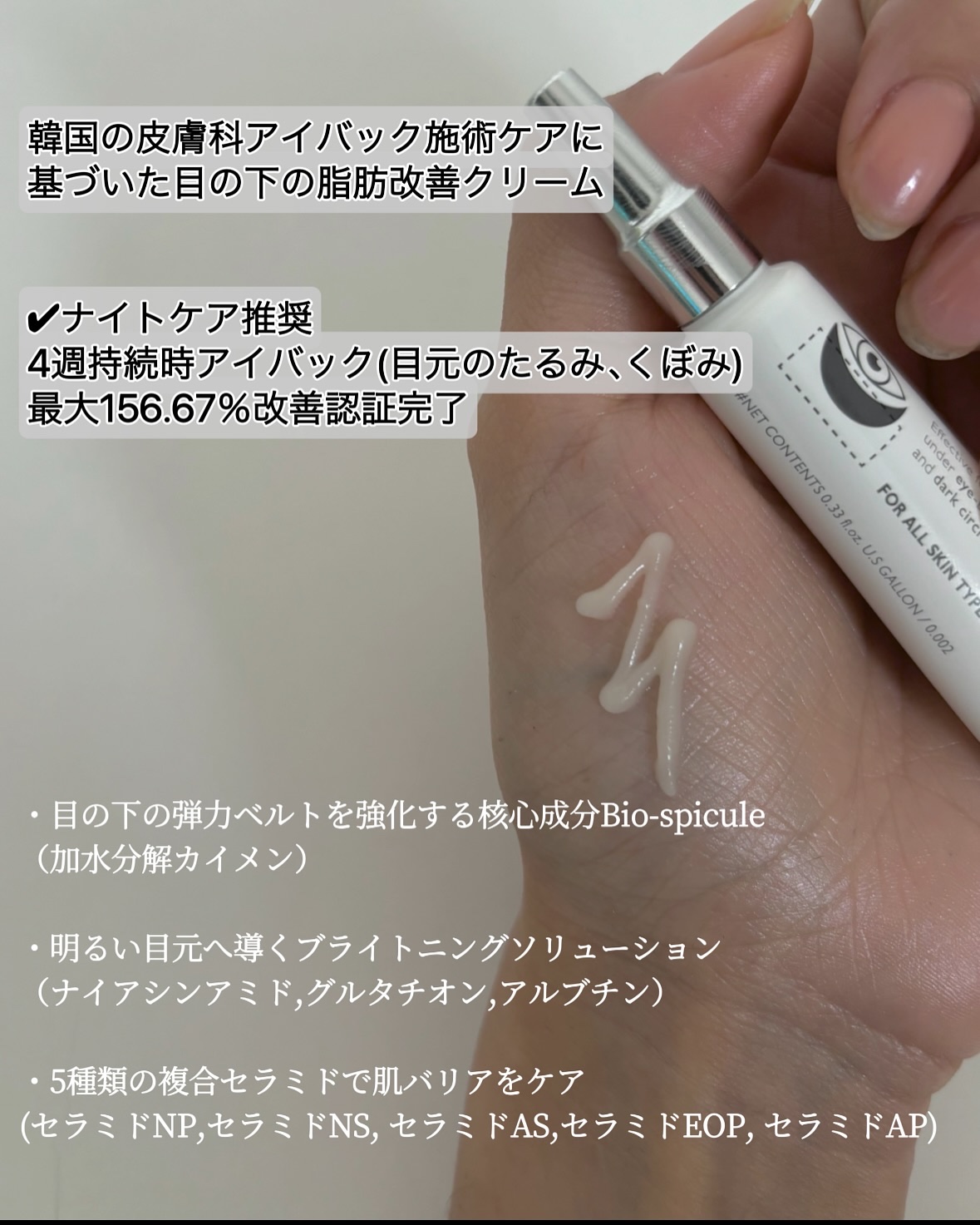 韓国のアイバックアイボンディングショット🌿 皮膚科のレーザー施術と同じ原理でアイバック(目袋)に塗布したとたんリフティングを叶える働きがあり なめらかな肌馴染みのいいクリームでベタつきはなく、バームのようなぴたっとしたつけ心地を感じた🌿 気になる目の下の脂肪改善のお悩みケアに継続して使ってみたいと思います🌸