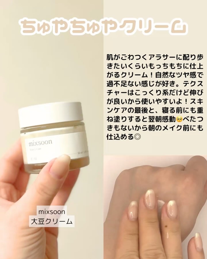 ✴︎mixsoon✴︎▶︎大豆クリーム価格:¥3,890(Qoo10公式)@mixsoon_jp様より大豆シリーズ3点をお試しさせていただきました。☑︎発酵大豆⇒発酵させることによりさらに高められた吸収力で肌の健康をサポート。☑︎発酵大麦⇒豊...