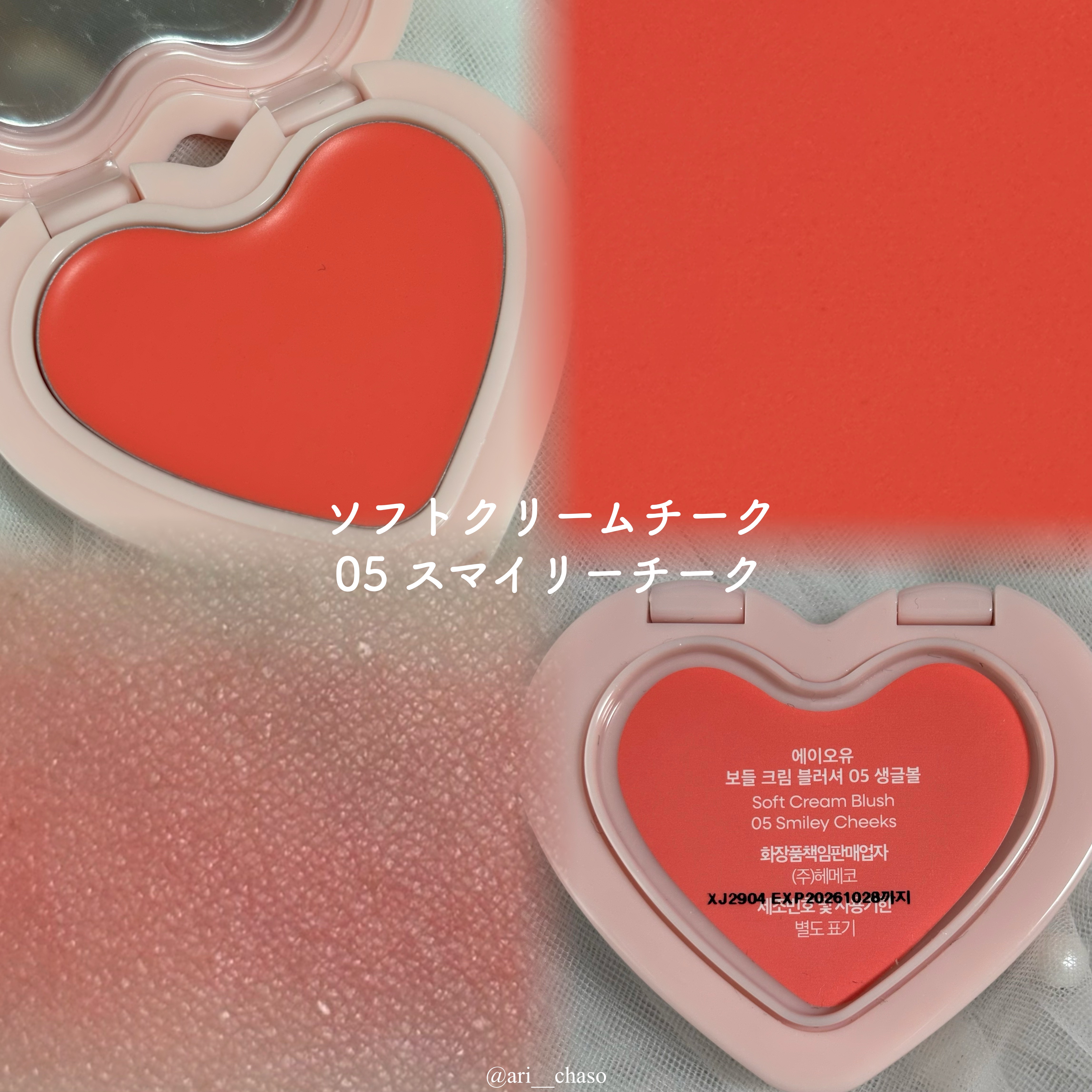 AOUソフトクリームチーク01はちゅチーク05スマイリーチークハート型のかわいいバームチーク全6色展開で色も豊富!!質感はソフトマットで発色がよく、しっとりクリーミーなテキスチャー。のばすほどサラサラに変化して、ムラなし&ピタッと密着!#PR...