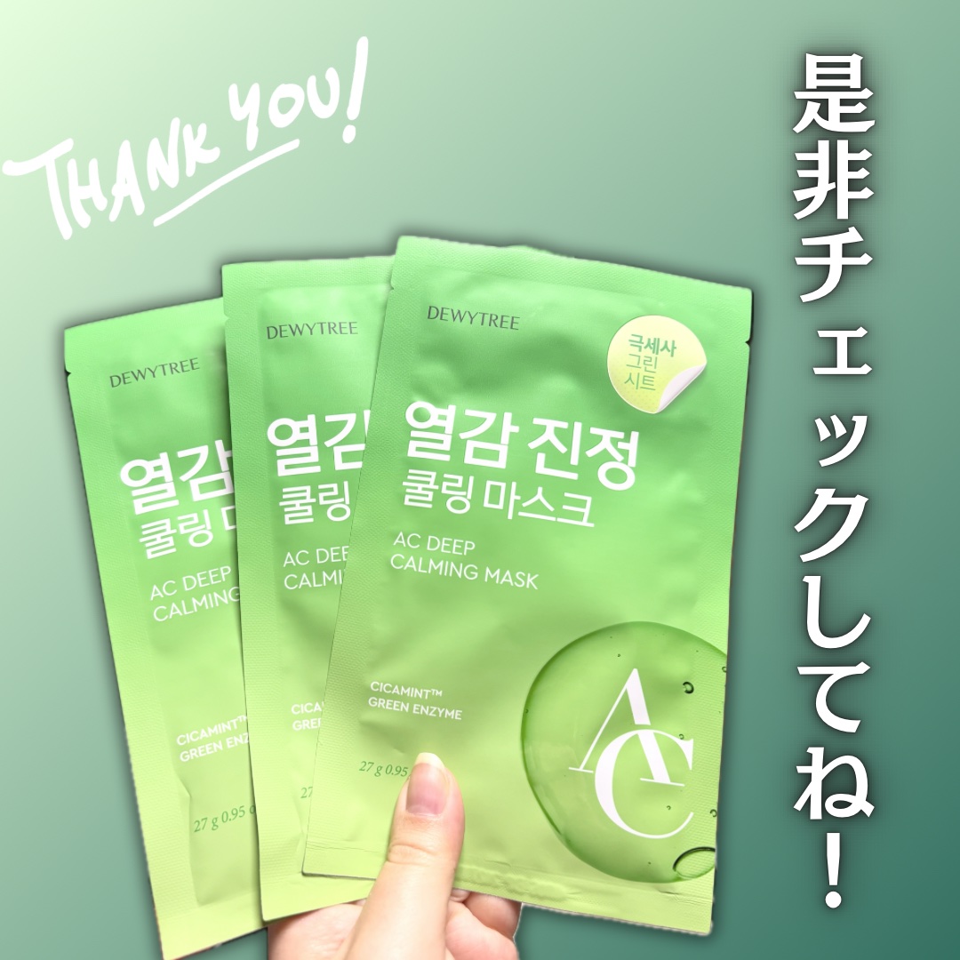 - 火照った肌の温度を下げ(クーリング効果*)、気になる毛穴悩みに効果が期待できる*このマスクパックは、べたついたり重くなく使用感が良いという評価を受けています。*原料の特性による DEWYTREEならではの独自成分であるシカミントを配合して鎮静効果を高め、グリーン極細糸シートが肌に密着して乾燥させずに使用できます。