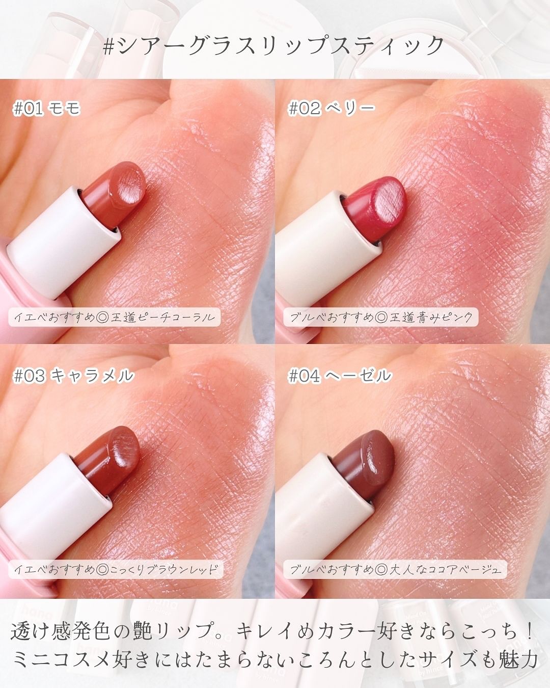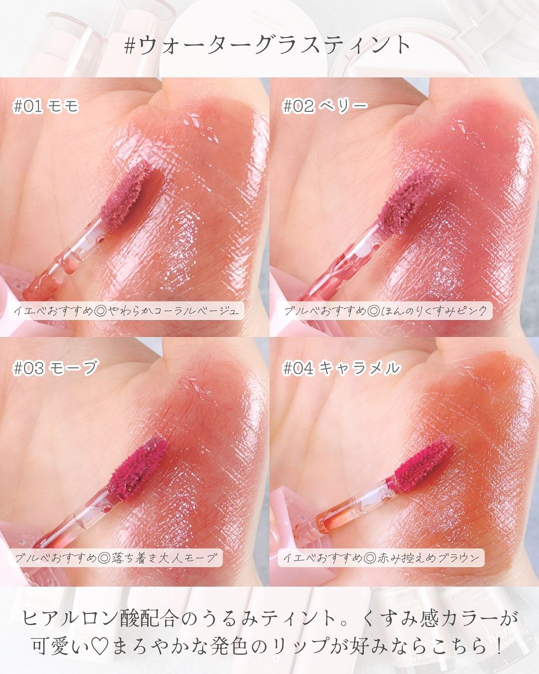 高保湿オイル成分を配合したうるうる・もっちり質感はまさに“水爆弾”🥺✨ 発色も◎です🙆♀️🤍 全7色展開、うち5色は日本のバラエティショップなどお店でも買えるようになっています✨