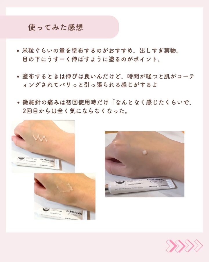 ドクターメラクチン(DR.MELAXIN)は「皮膚科施術の原理をそのまま」というコンセプトを掲げる韓国のスキンケアブランド。 目元がピーンと持ち上げられる感じのアイバック即刻効果アイクリーム。微細針で肌にハリを与えてくれる😌 継続使用の効果も臨床試験済みだって🥰 3月12日までメガ割り開催中なので気になる方はこの機会にお試ししてみてね✨