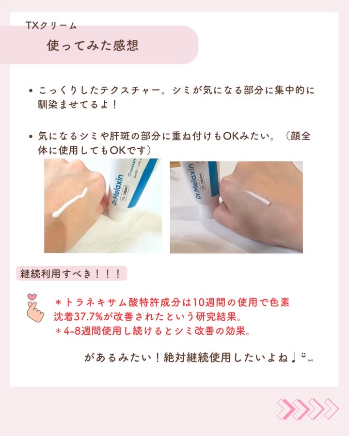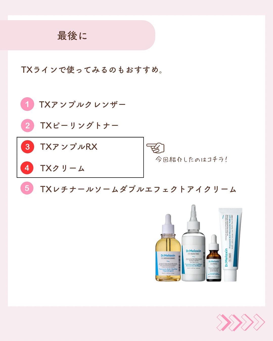 @dr.melaxin.jpさまのTXシリーズ✨使ってみました☺️ドクターメラクチン(DR.MELAXIN)は「皮膚科施術の原理をそのまま」というコンセプトを掲げる韓国のスキンケアブランド。今回はシミや色素沈着に着目したシリーズ。美白やシミケ...