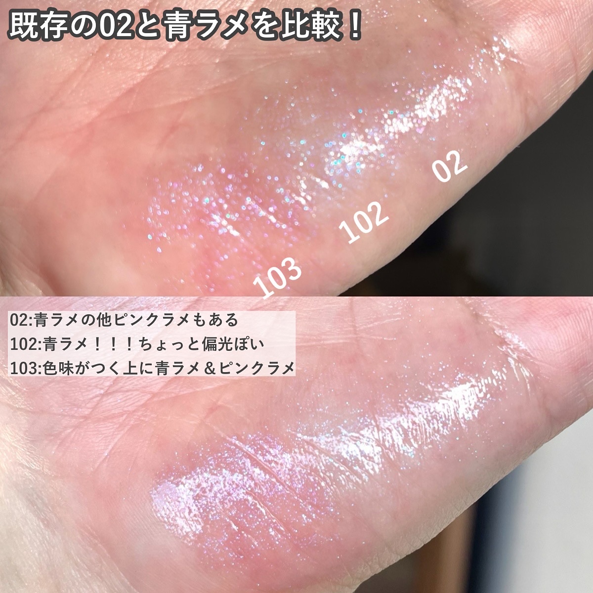 潤い感、スースー感のある艶ぷるリップです💁♀️ リップクリーム感覚で塗れる、保湿感と透け感のある発色が特徴になってます✨ 私のお気に入りは、トップに使用した、02と06! 02は青ラメが可愛すぎて、重ね使いにおすすめ! めちゃくちゃ使いやすくて、鏡なしノールックで毎日ぐりぐり使ってますよー! 店頭でチェックしてみてね!!