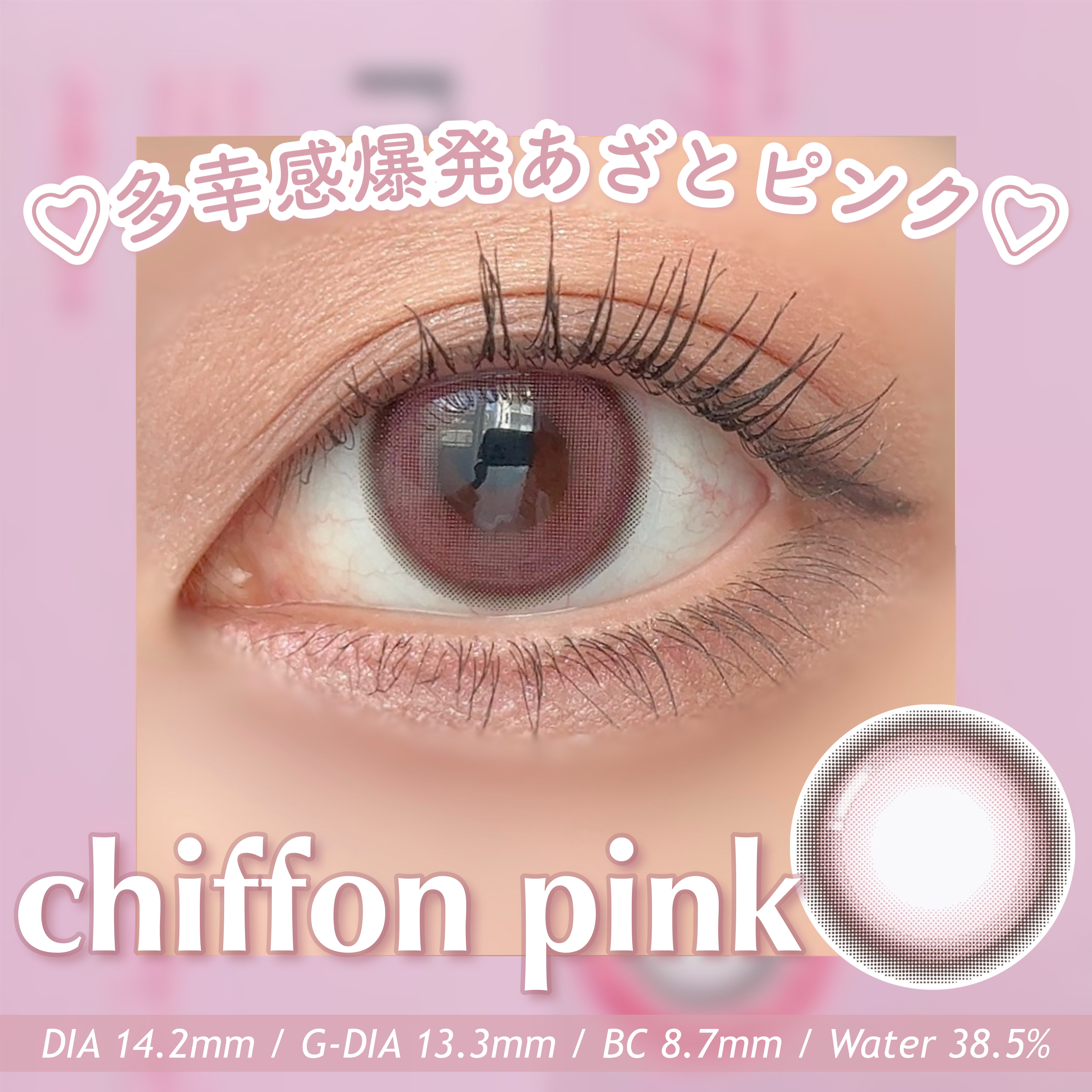 - 瞳をドレスアップ 森香澄推しカラー「chiffon pink」ついに誕生!! 幸せをまとう大人かわいいあざとレンズ ”多幸ピンク” ・ウワサPOINT1:たった3秒で印象チェンジ!奇跡のスッピンアップデート ・ウワサPOINT2:韓国で話題のカラコンブランドがデザインをバックアップ ・ウワサPOINT3:どんな日本人女性にも合うこだわりのバランス、着ける人を選ばない◎ ・まるでシフォンドレスをかぶせたような柔らかく自然なトーンアップデザイン ・2トーンカラーのグラデーションで奥ゆかしい瞳へ ・長時間着けても乾きにくい低含水処方(38.5%) ・全4色 chiffon brown / chiffon beige / chiffon gray / chiffon pink 使用上の注意 〇このレンズは1日使い捨てコンタクトレンズです。 〇ご使用の前に必ず添付文書をよく読み、正しくお使いください。 〇眼科での定期検査を受けてください。 〇目に異常を感じたら直ちにレンズの装用を中止し、眼科医の受診を受けてください。