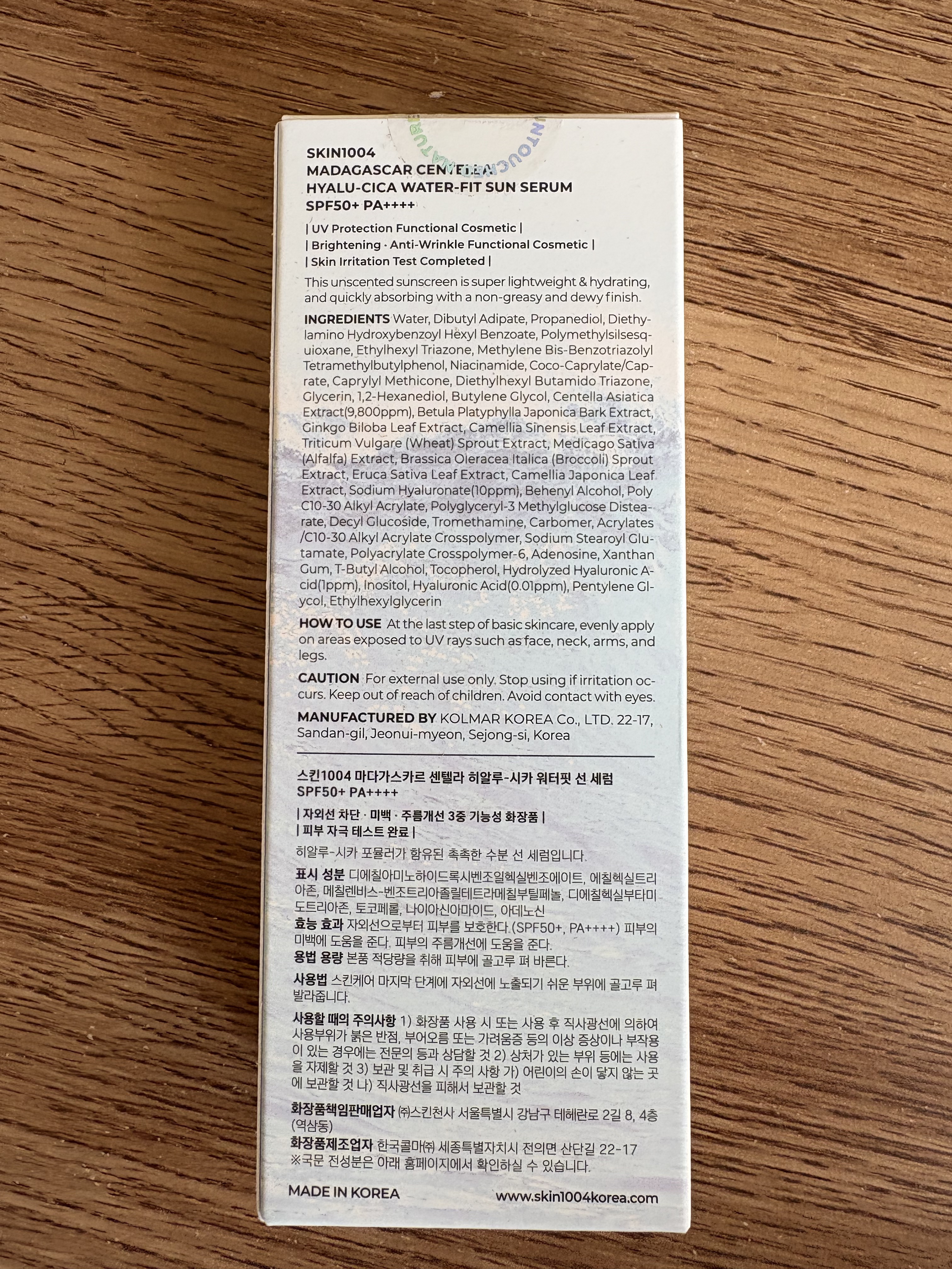 【使った商品】CENTELLAセンテラ ヒアルーシカ ウォーターフィットサンセラムSKIN1004(スキンワンオーオーフォー)【商品の特徴】SPF50+PA++++50g強力な紫外線遮断はもちろん、セラムのような軽い気持ちで付け心地で、ベタつ...