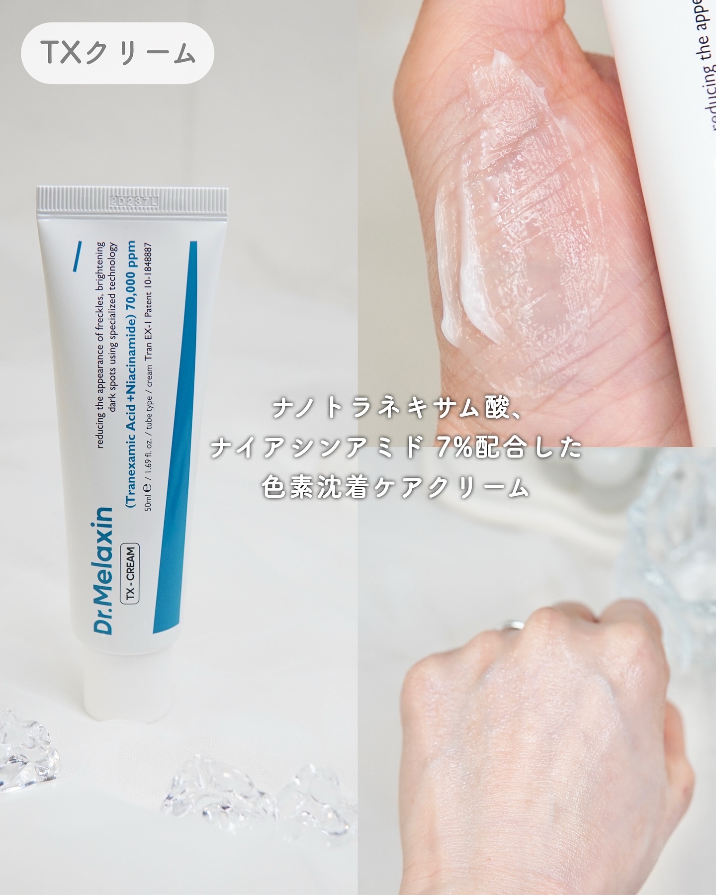 ☺︎@dr.melaxin.jpシミが気になるという人はよく知っている成分‘トラネキサム酸'この成分をナノ化して、塗る化粧品に開発👏▪︎Dr.Melaxin明るい新生活TXセット税込6,490円肌の色素沈着に悩み始めるアジア女性の平...