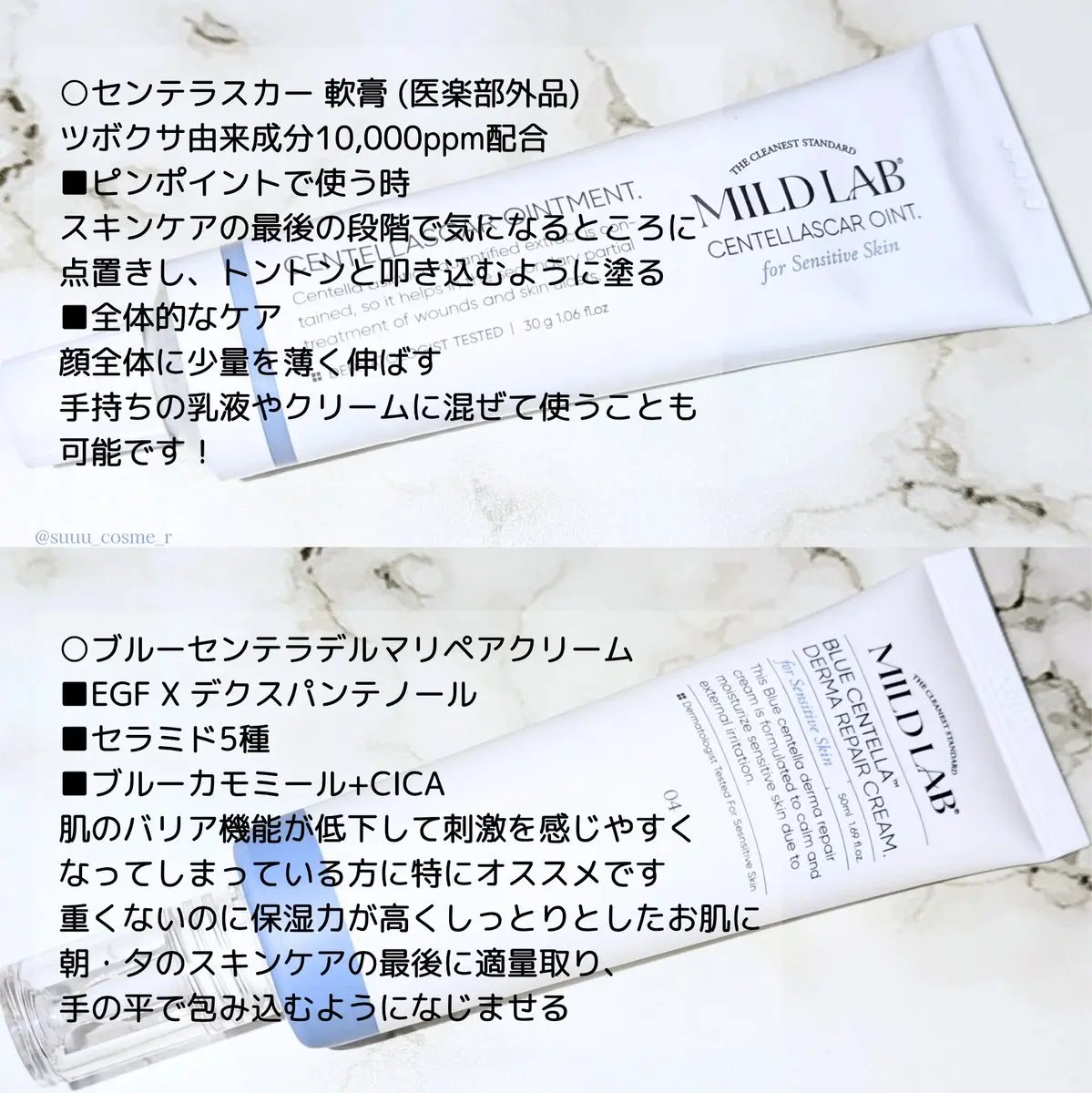 .MILDLAB*センテラスカーオイントメント(軟膏)ツボクサ滴定エキスとセンテラエキス10,000ppm配合の、強力なケアのため医薬部外品の軟膏🌸ステロイド入っていないし、オイリーじゃないから使いやすい。私の肌荒れには効果あった🥹すげ。#P...