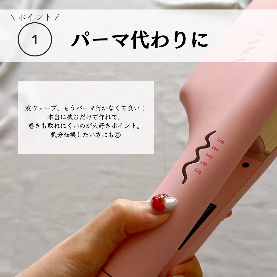 VODANAトリプルフローウェーブアイロン(32mmPinkVanilla)挟むだけでかんたんにウェーブヘアが作れるウェーブアイロン💗S字デザインのプレートが内蔵されていてウェーブを付けたい部分を挟むだけ🙌🏻✨好きな位置にずらして、カールをつ...