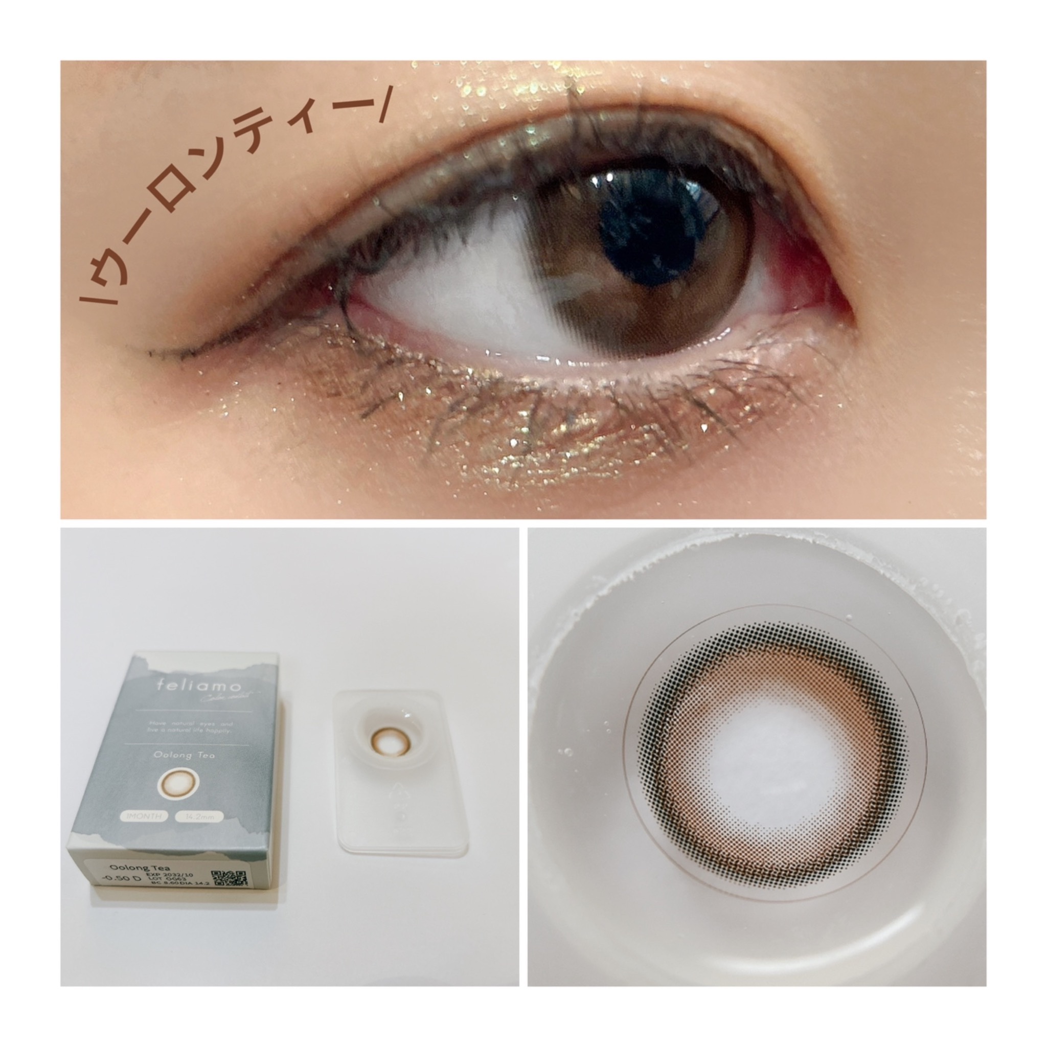 feliamoのマンスリーから新色が登場!【ウーロンティー】DIA…14.2mm着色直径…13.0mmさり気ない細フチと透明感のあるブラウンが瞳を自然に大きく見せてくれる【タルトタタン】DIA…14.5mm着色直径…13.7mmくっきりな黒フ...