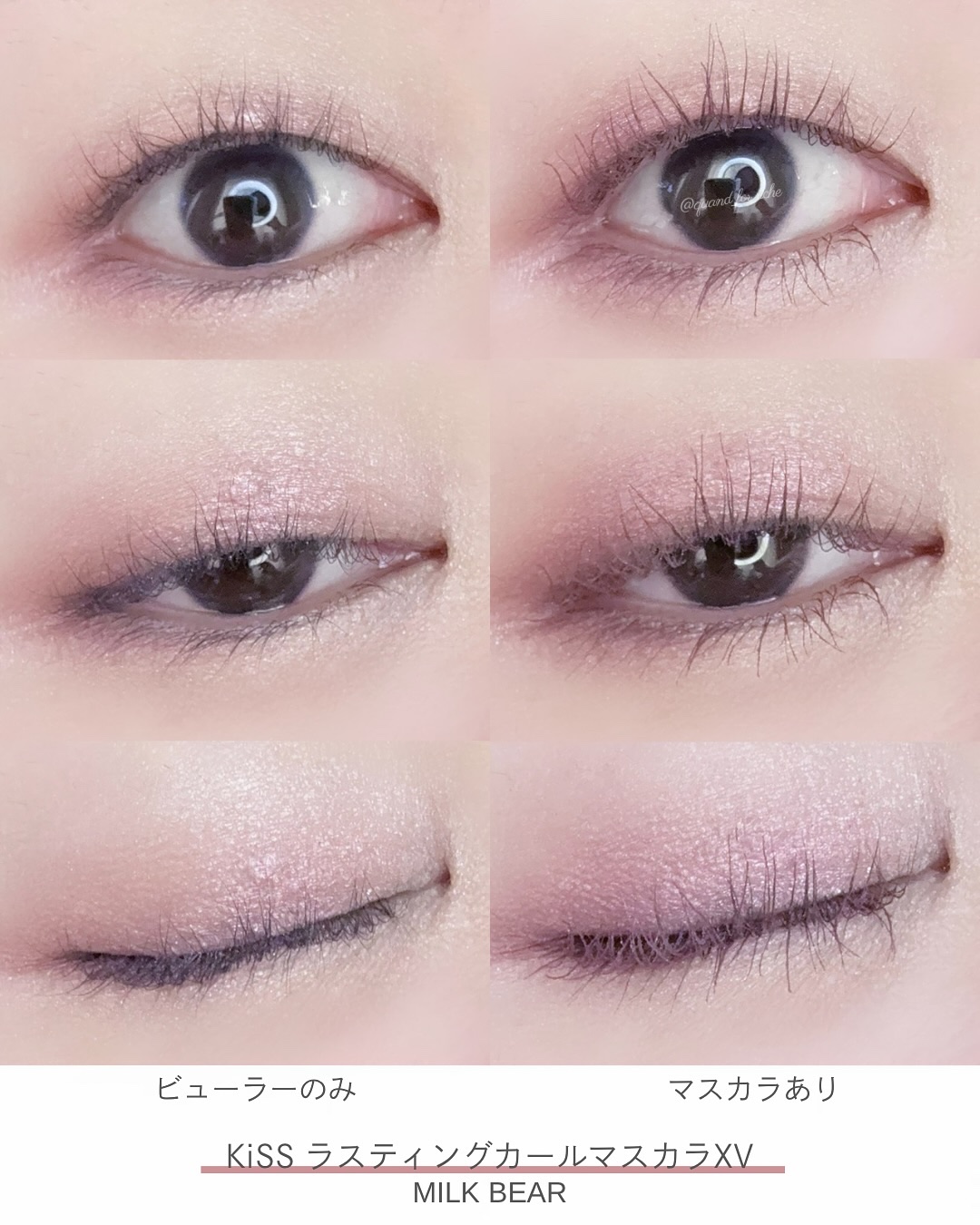 こちらのマスカラは、他にはない絶妙なミルクティーグレージュカラーで使用すると透明感溢れる儚い女の子のまつ毛にしてくれます✨ ブラシはコシがしっかりしていて細かいところも塗りやすいです🙆 色が薄めのマスカラ下地を塗った上で使用すると、しっかり色がでるのでおすすめです🥰