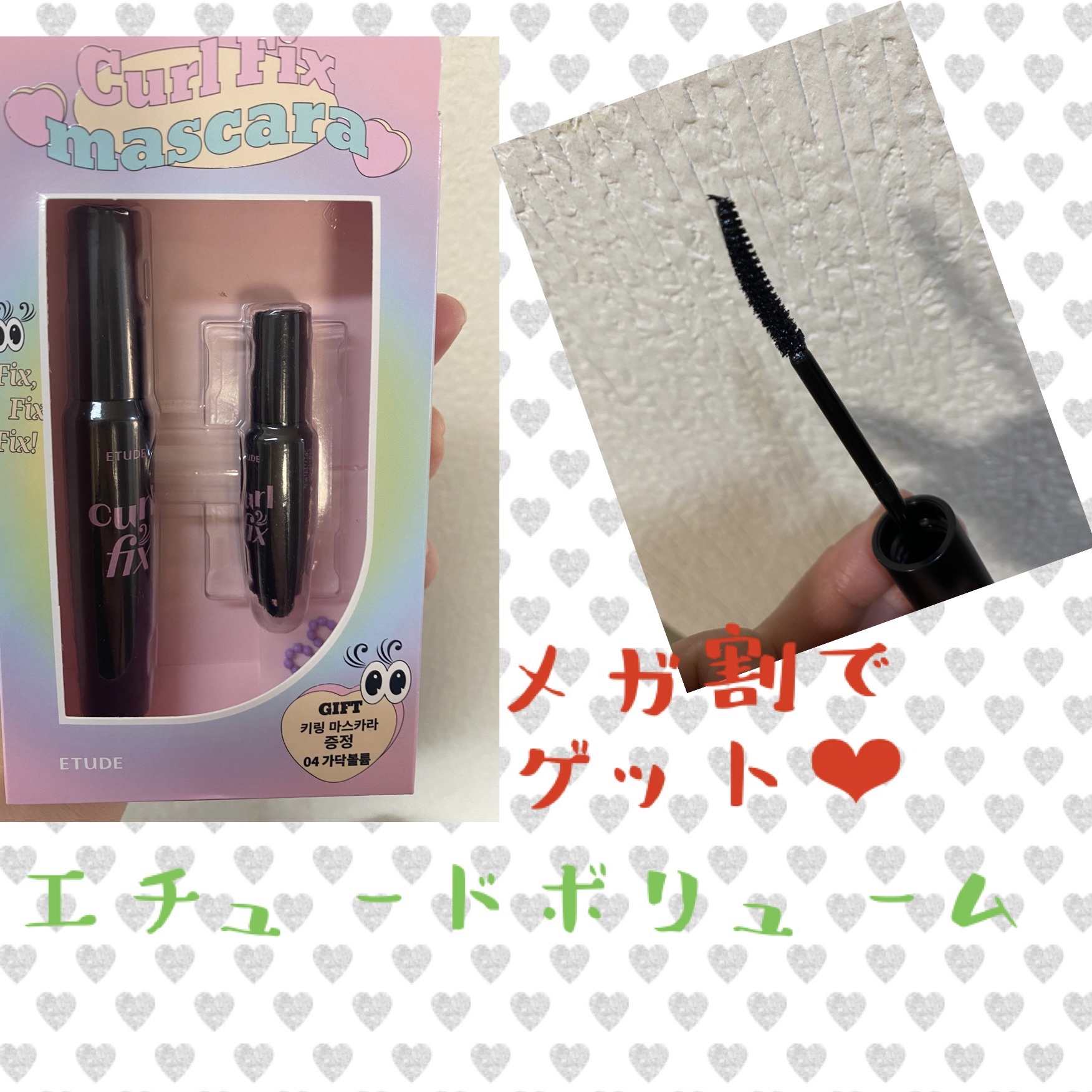 ETUDEの超優秀マスカラから新作登場♡ 黒いパケが印象的なカールフィックスマスカラ ボリュームブラック💎 カールキープ力が抜群! 朝メイクして夜お風呂入る前に鏡を見てもまつ毛はカールしたまま!感動🥺! 1本で、カールキープ・ボリュームアップ・トップコートの3役を叶える ベース&トップコート🌈