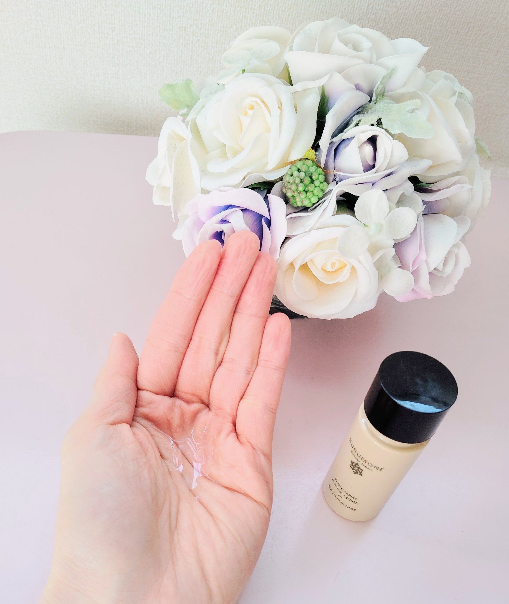 | スルスルっと伸びて、肌になじむとほんのりツヤ感を感じます。 後肌はさらり。 | 詳細を見る | ||