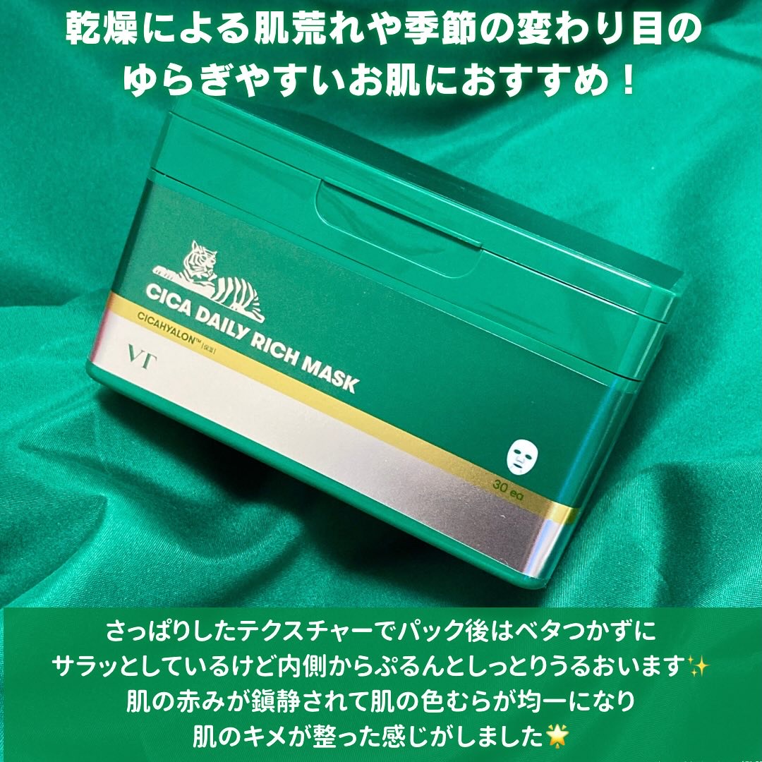 🎀🌷〻VT様よりいただきましたˊ˗☑︎CICADAILYRICHMASK既存のCICADAILYSOOTHINGMASKの2倍*濃縮されたCICA成分が配合**されてパワーアップした新商品🧸🌿✨柔らかいシートがお肌にぴたっと密...