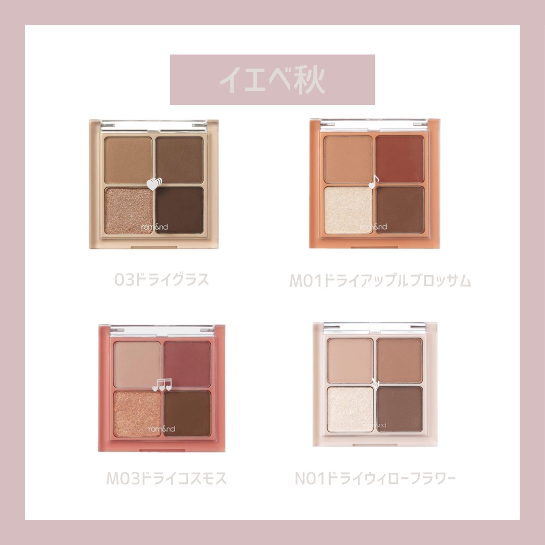 今回はrom&ndのベターザンアイズをPC別に紹介します!参考になれば嬉しいですrom&ndベターザンアイズ ¥1760#ロムアンド#romand#アイシャドウパレット#アイシャドウ#パーソナルカラー#コスメ#韓国コスメ...