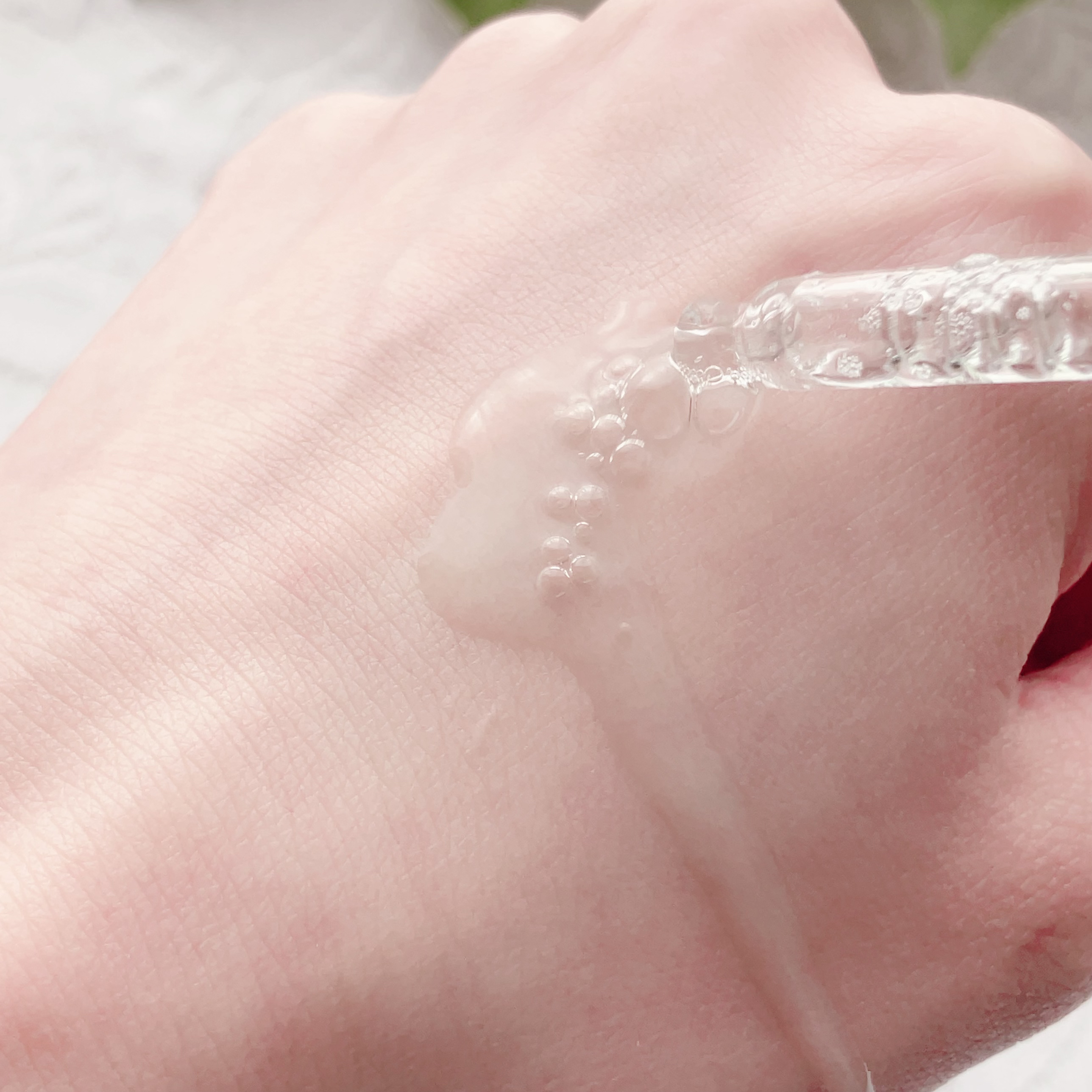 さらさらで伸びが良いテクスチャー。 肌への密着感もあって、ピンクベージュの色みが毛穴のカバーとほんんのりトーンアップも。 クリームのようなテクスチャー。 肌にのせすぎると白っぽくなるので、少しずつ伸ばすのが◎ なめらかテクスチャー。 細かいパールが入ってますが、ギラギラしたりもなく自然な感じ。