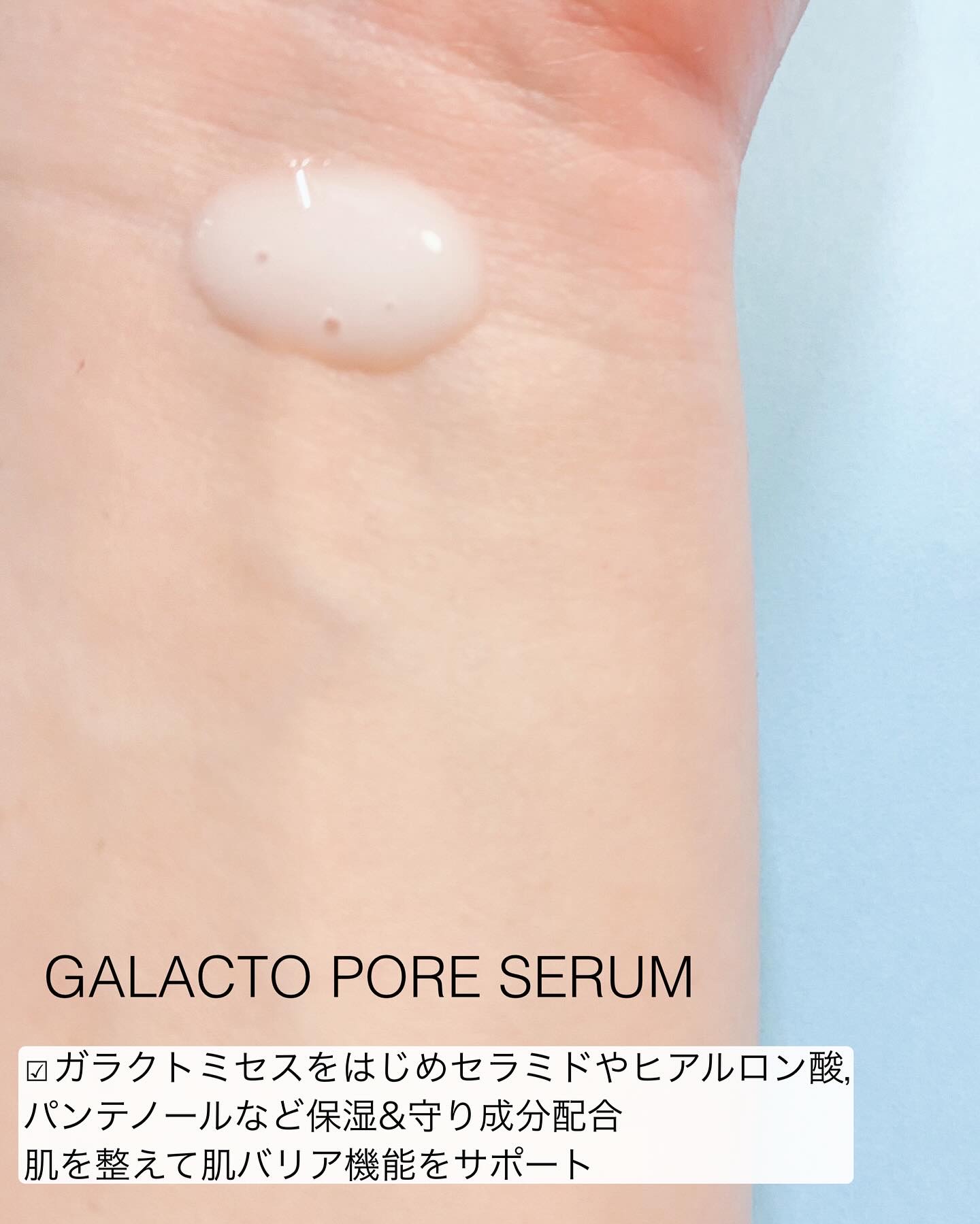 ガラクトポアオーツートナーは振ると現れる酸素バブルでキレイな毛穴に…🥹✨刺激もなく、スーッと馴染むので使い心地良くしっとりとしてます! ガラクトポアセラムも刺激なく毛穴ケアができる大人気のアイテム!こちらは使用前と後の短期間で毛穴ケアできているかもと思えました🤍