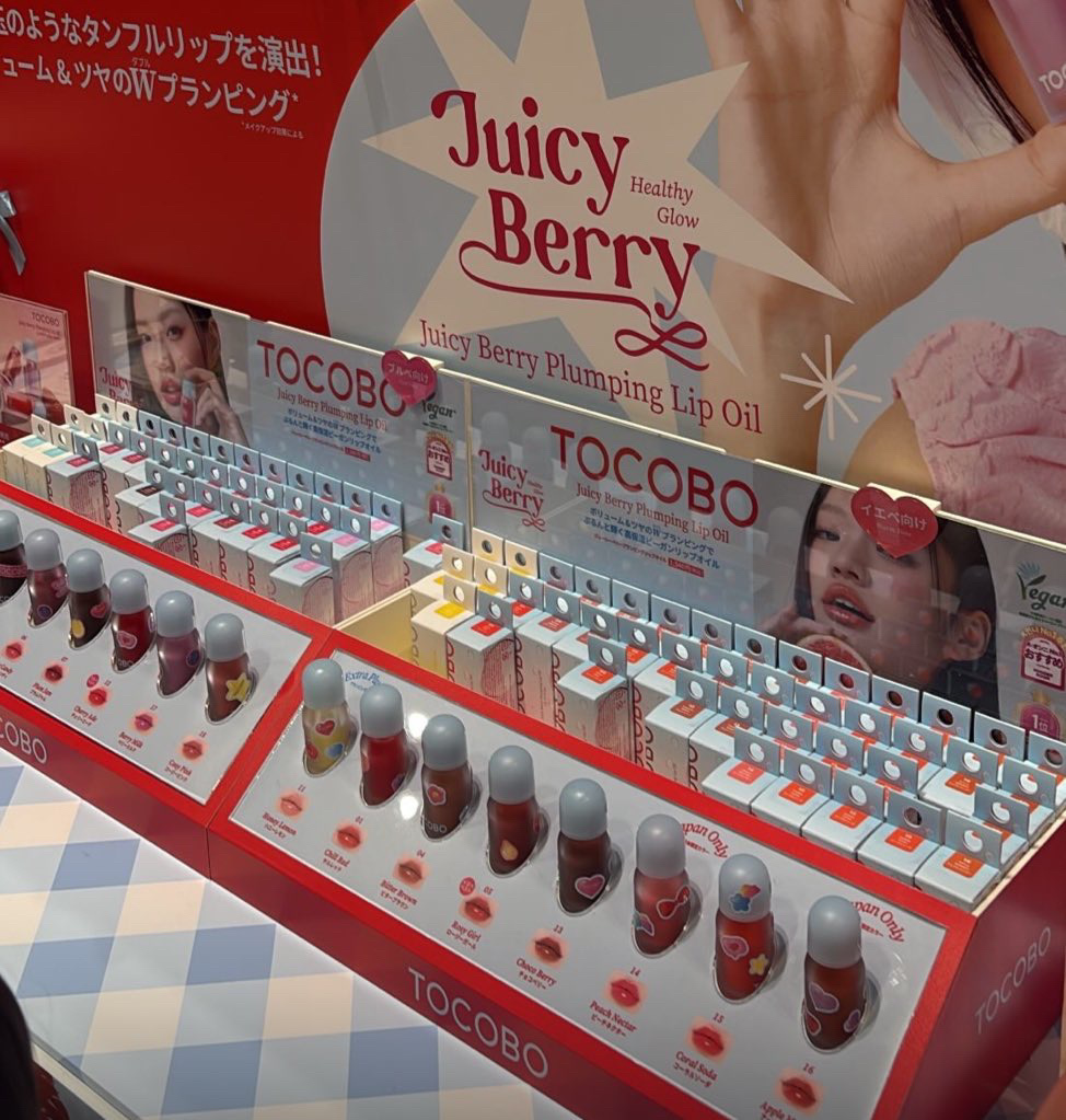 ショートケーキみたいな可愛いTOCOBOのブースへお邪魔してきました🏃♂️❣️ TOCOBOのリップオイル、日本限定カラー2色もしっかり見てきました!! ツヤっとぷるんなタンフルみたいなリップが作れるのでつやつや好きな人はロフトに探しに行ってみてね✨️