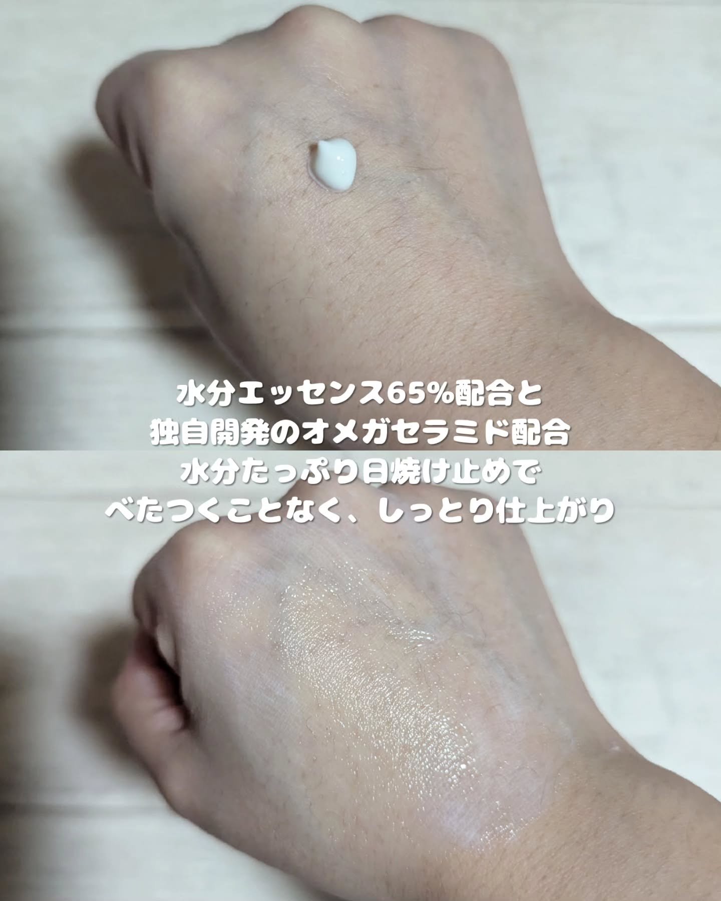 まるで水分クリーム。やわらかくのびて、しっとり肌になじみます。ものすごくつけ心地がいい! 紫外線のダメージで弱った肌をケアして、肌バリアを改善してくれる機能もあるそうです。 日焼け止め効果が高くて、時間が経過しても乾いてくる感じがしないから、暑い夏がやってきても快適に乗り切れそう。