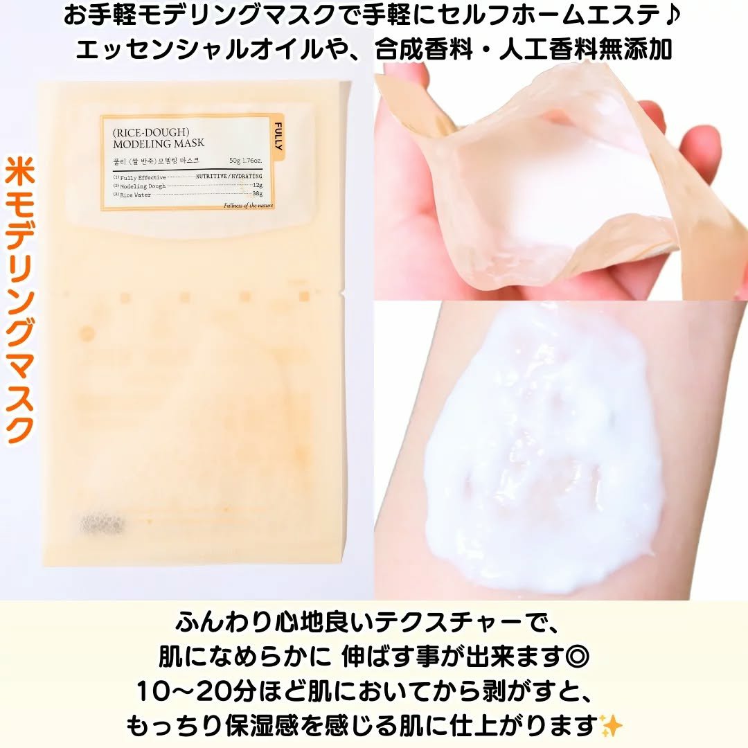 - 天然原料の米で作られた 米モデリングマスク 他の道具がなくても手軽で、顔に残る残渣がなく、量を調節しやすいモデリングマスク 水は必要ない、マスクの中にある米ぬか水(保湿)を利用して潤いたっぷり入ったマスクパック。 クールな使用感&保湿&整肌&ハリ効果 人工香料無添加で肌にやさしい使い心地。