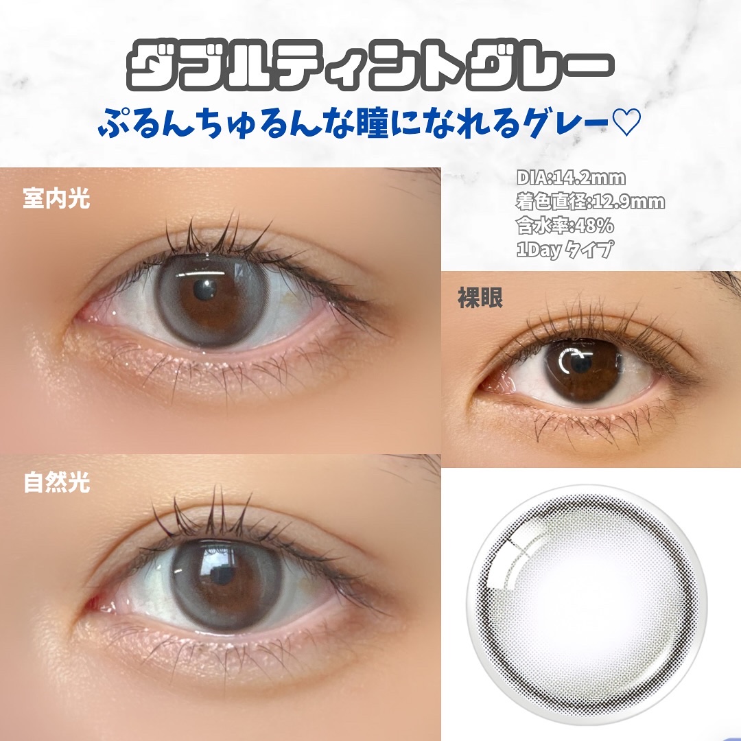 OLENSダブルティントワンデーカラー:グレー着色直径:12.9mmぷるんちゅるんカラコン🩶対角線上にハイライトの入った珍しいデザイン!対角線になっているおかげで、カラコンが回って方向きが変わってしまったり、左右でズレてしまっても気になりにく...
