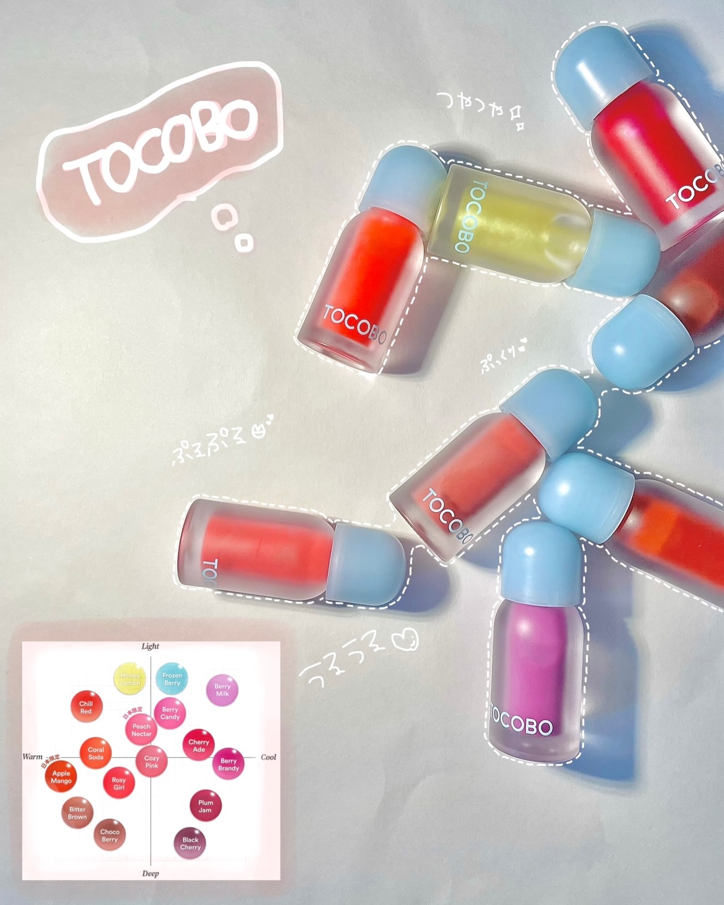 〈TOCOBO6colors〉トコボジューシーベリープランピングリップオイル6色レビューgiftedby@tocobo_jp@tocobo_official11HONEYLEMON/PLUMPINGMAX❤️🔥12CHERRYADE13CH...