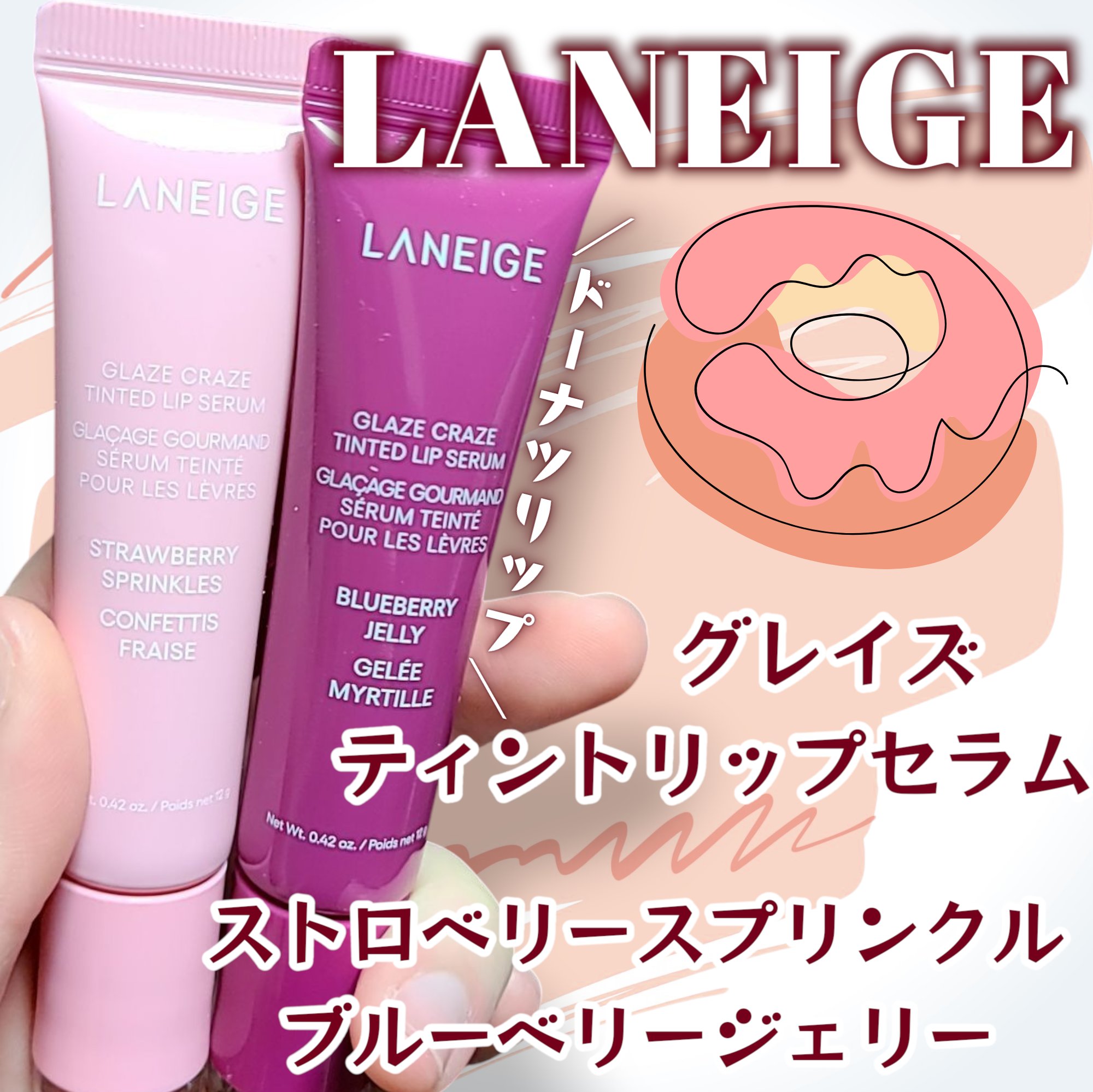 ■LANEIGEグレイズティントリップセラム・ストロベリースプリンクル🍓・ブルーベリージェリー🫐95%スキンケア成分配合の血色感*リップセラム💕ムラなくフィットするドーナツ型アプリケーターが塗りやすい!べたつかないツヤ仕上がりです✨*メイクア...