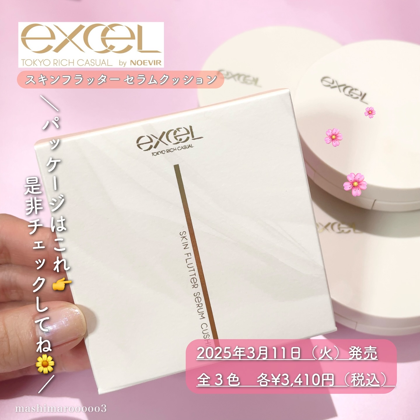 - 肌が躍る軽やかさ。端正なツヤ肌を叶える美容液クッションファンデーション [うるおい仕立てで薄膜カバー] 美容液73%*1でみずみずしく伸びの良いテクスチャー。 気になる部分を軽やかにカバーして、ツヤのある均一な素肌のような仕上がりに。 ●浸透型ビタミンC*2 ●ナイアシンアミド ●グリシルグリシン ●3種のセラミド*3 (すべて保湿) [つけたての美しさ続く] うるおいキープ成分*4&皮脂吸着成分*5in 日中の乾燥や崩れを防いで、時間が経っても美しい仕上がりが続きます。 *1 仕上がり効果粉末を除く成分 *2 パルミチン酸アスコルビルリン酸3Na *3 セラミドNG、セラミドNP、セラミドAP *4 ジカプリン酸ネオペンチルグリコール(保湿) *5 セルロース <SF01>ピンクよりの明るめの色 <SF02>やや明るめの色 <SF03>中間的な明るさの色 SPF50+ PA++++ 細かい部分も塗りやすいしずく型パフ 2025年3月1日(土)よりプラザ、ロフト、エクセル公式オンラインショップにて先行販売。