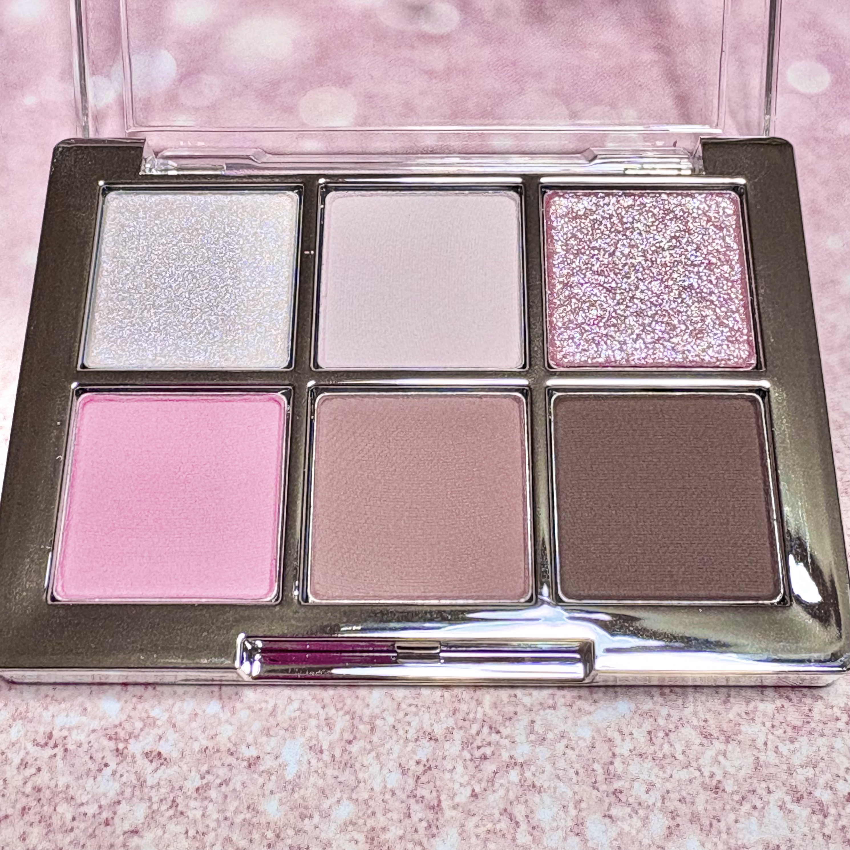今回のアイシャドウパレットは白味が強くてどれもかなり明るいカラーです。 上段の真ん中のマットなホワイトピンクは涙袋の下地やハイライトにも使えて1番出番があります。 中段の右のマットピンクは割と発色が良いのでメインカラーとして重宝しています。