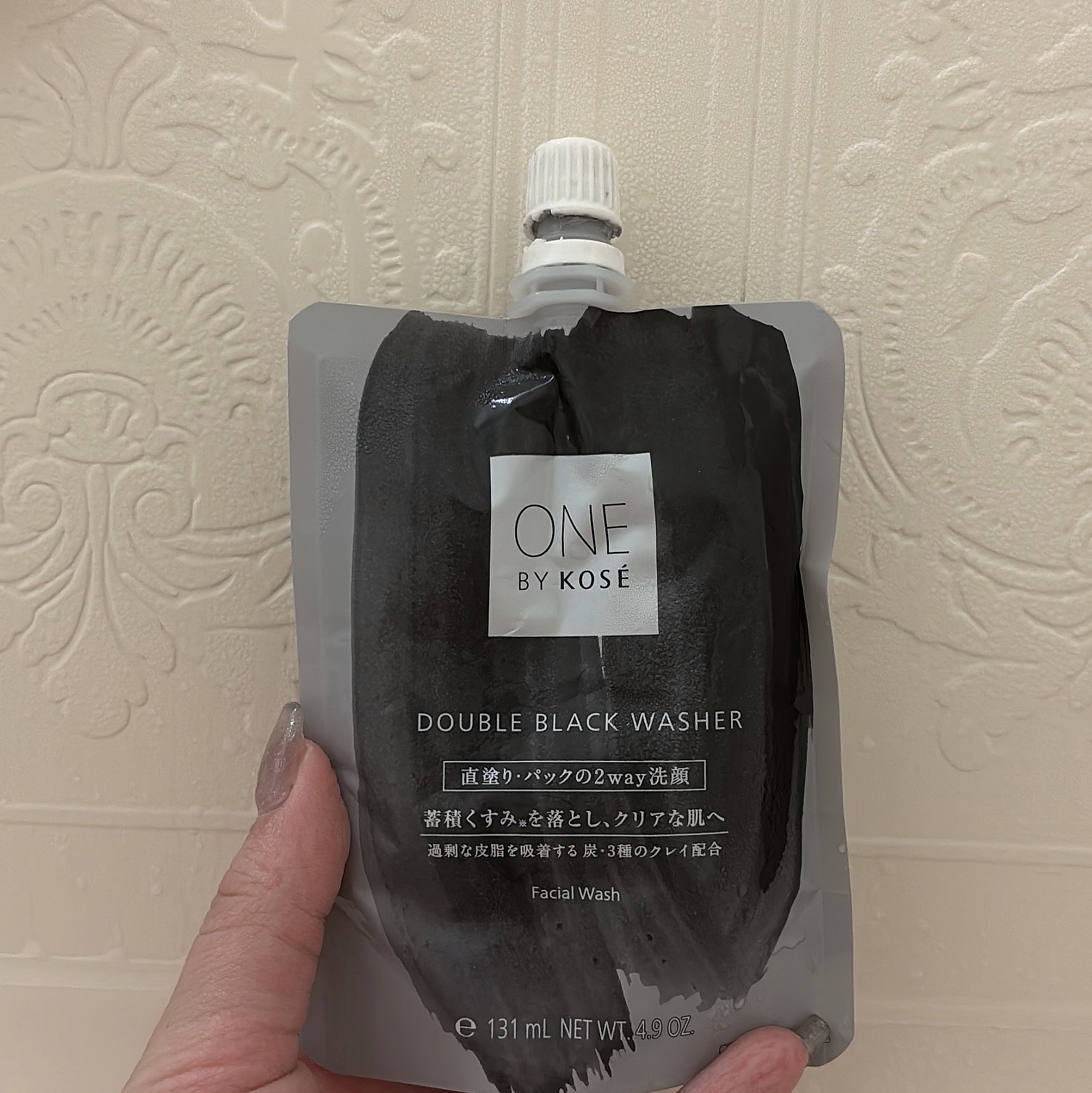 ONEBYKOSEダブルブラックウォッシャーパック洗顔もできる!直塗り洗顔!泥&クレイで過剰な皮脂をしっかり落として、くすみをクリアに🙌🏻使用量をcmでパッケージに記載してくれてて、取り出しやすい形だから適量がわかりやすい!みずみずしくて伸ば...