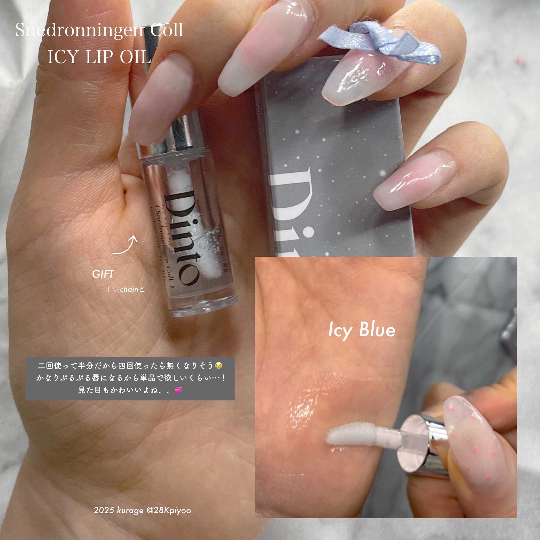 雪のように冷たい清涼感、そしてもっちりしたゼリーテクスチャー 雪の女王からインスピレーションを得た神秘的なカラー🌟 高級感のある光沢が楽しめるリップだよ! プランパー効果でスーッとしてむちむちな唇が目指せるのがお気に入り!
