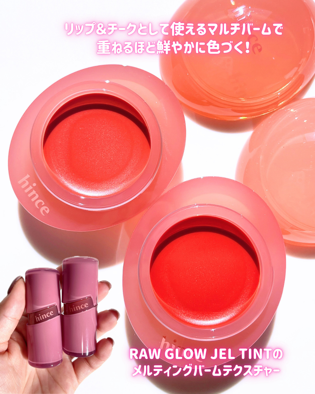 シアーな血色感が内側から満ちる リップ&チークマルチバーム 重ねるほど鮮やかな発色でベタつきもなく、使い心地◎ とろけるバームテクスチャーで自然な血色感とぷるつや感が可愛すぎる🥹