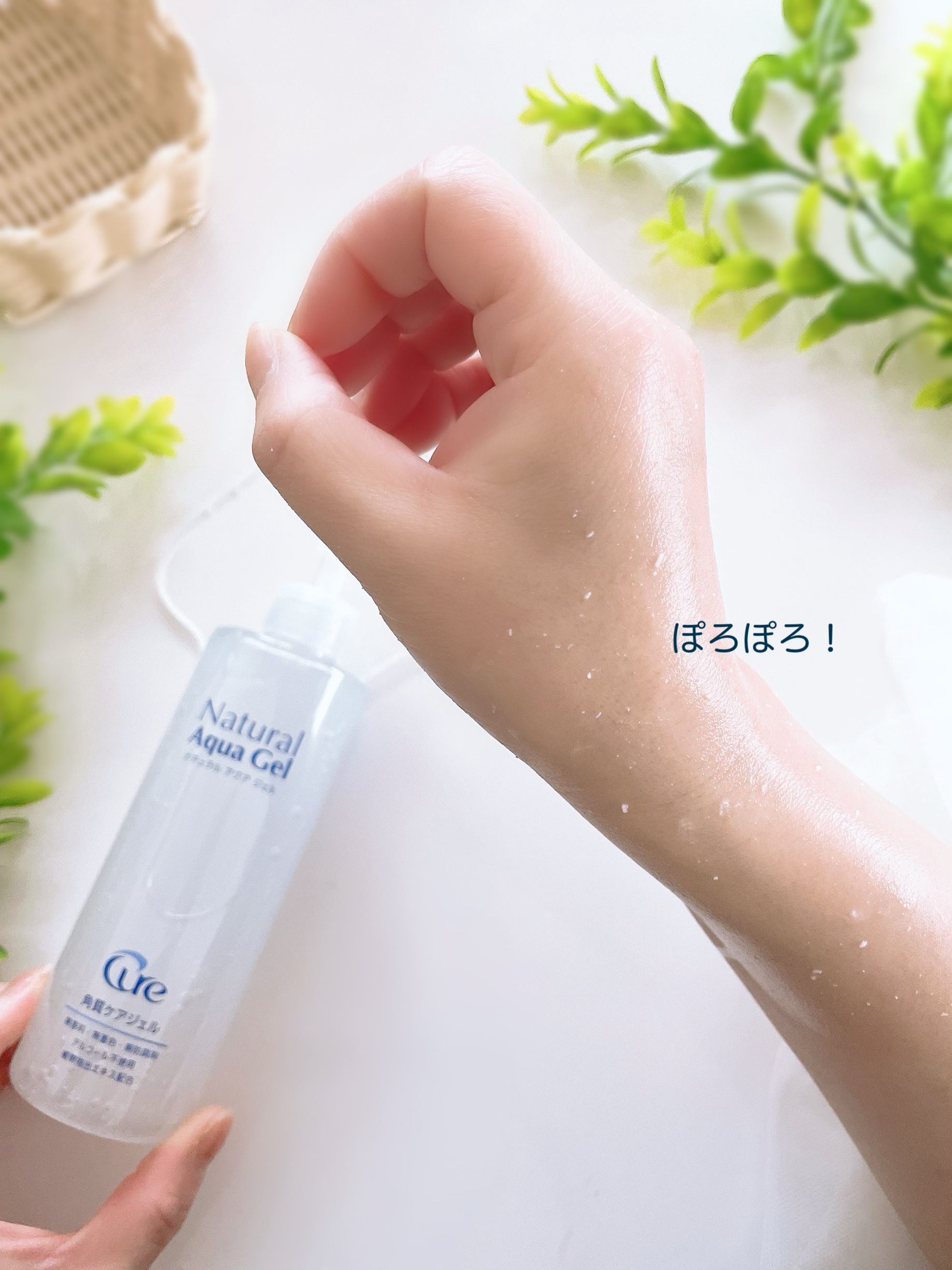 - 週2回の角質ケアで素肌つるん。 肌のお手入れで大切なことは、キレイに「落とす」こと。 メイクや皮脂汚れを落とすように、古くなった角質を取り除くことは、キレイな肌を保つためには、大切なお手入れです。 ナチュラルアクアジェルは、成分の約90%が水でできています。 もちろん、無香料・無着色・無防腐剤。 肌に塗って、くるくるやさしくマッサージするだけで、ジェルが古い角質と反応してポロポロと余分な角質をやさしく除去します。 肌に負担をかけずにやさしくマッサージすることで、毎日の洗顔だけでは取り除くことの出来ない古い角質を除去します。 週に2回の角質ケアで美容成分の浸透を高め、毎日のお手入れがもっと効果的になります。