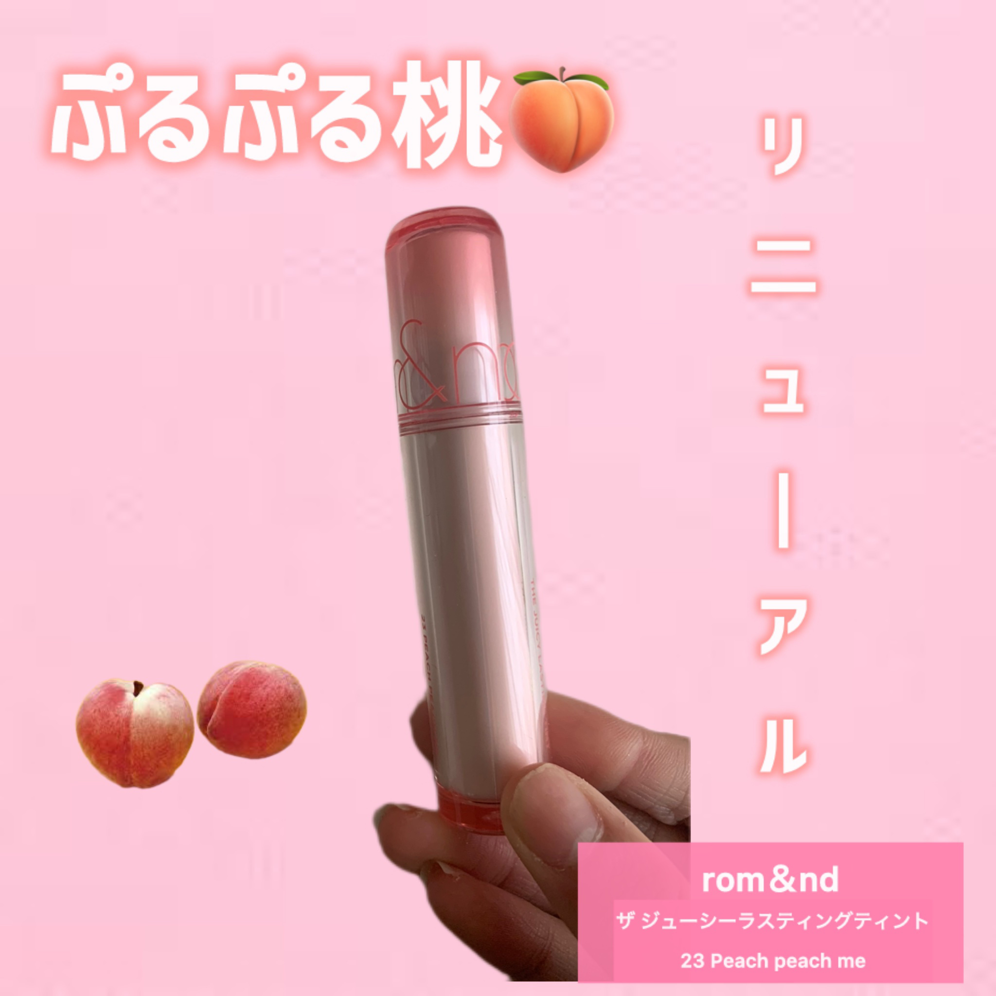 みち😼です。【rom&nd】ザジューシーラスティングティント23ピーチピーチミー/¥1,320大人気のジューシーラスティングティントがリニューアル🙂↕️🩷バズってる新色のピーチピーチミーを購入🍑甘い香りで、サラッとした液で塗りやすい!わたし...