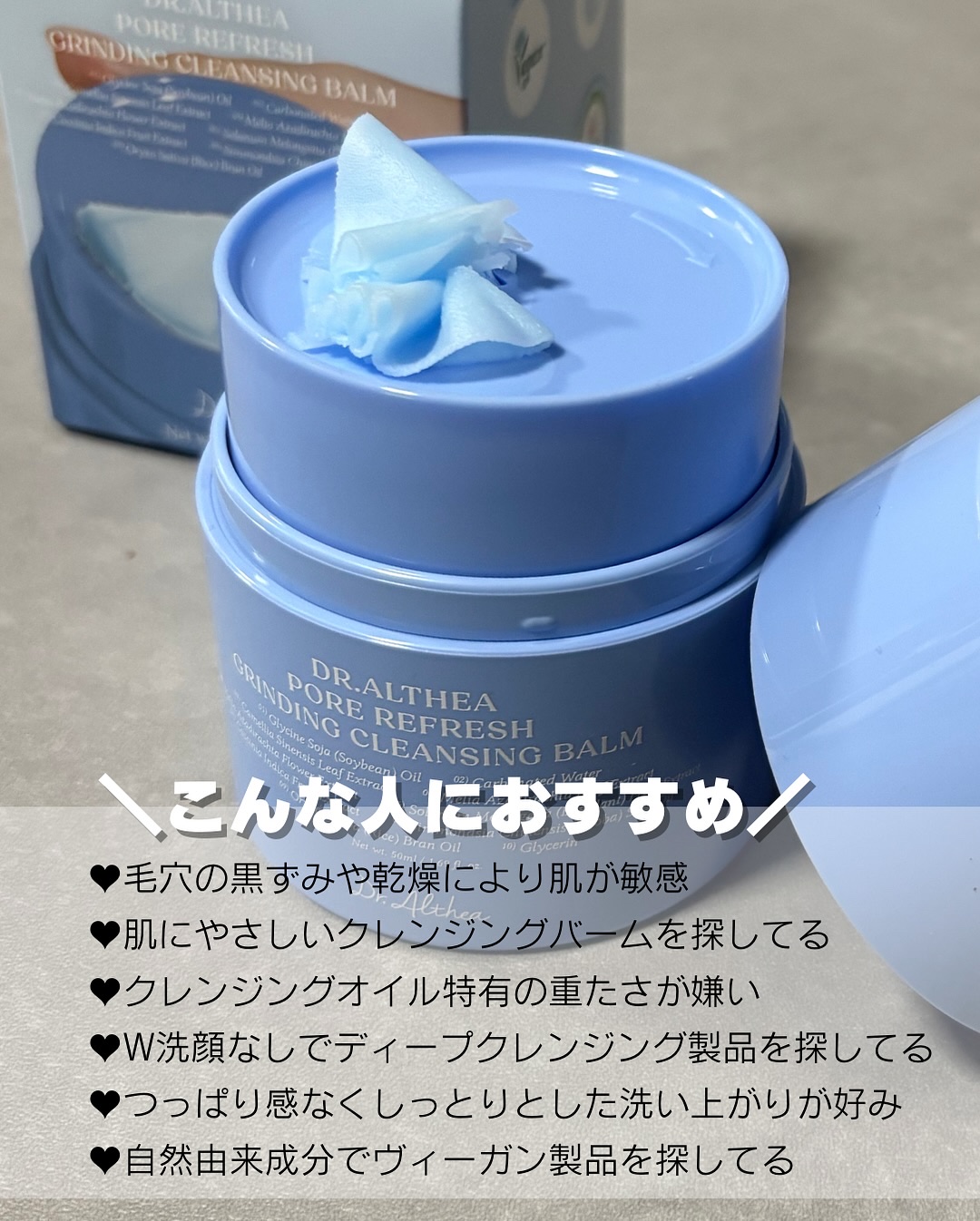 Dr.Altheaのシャーベットクレンジングバームに保湿タイプ登場✨以前使ったグリーンのバームは肌荒れケアタイプで、こちらのブルーのバームは保湿ケアタイプ!!ちょっとシャリっとしてて名前の通りシャーベットみたいなテクスチャー。スパチュラ不要、...