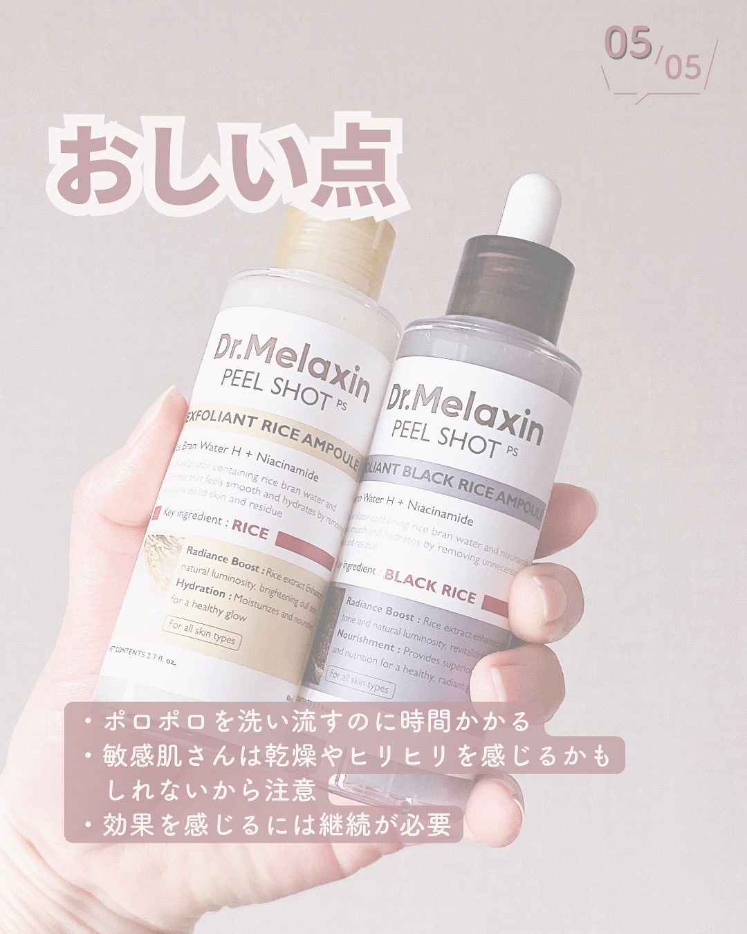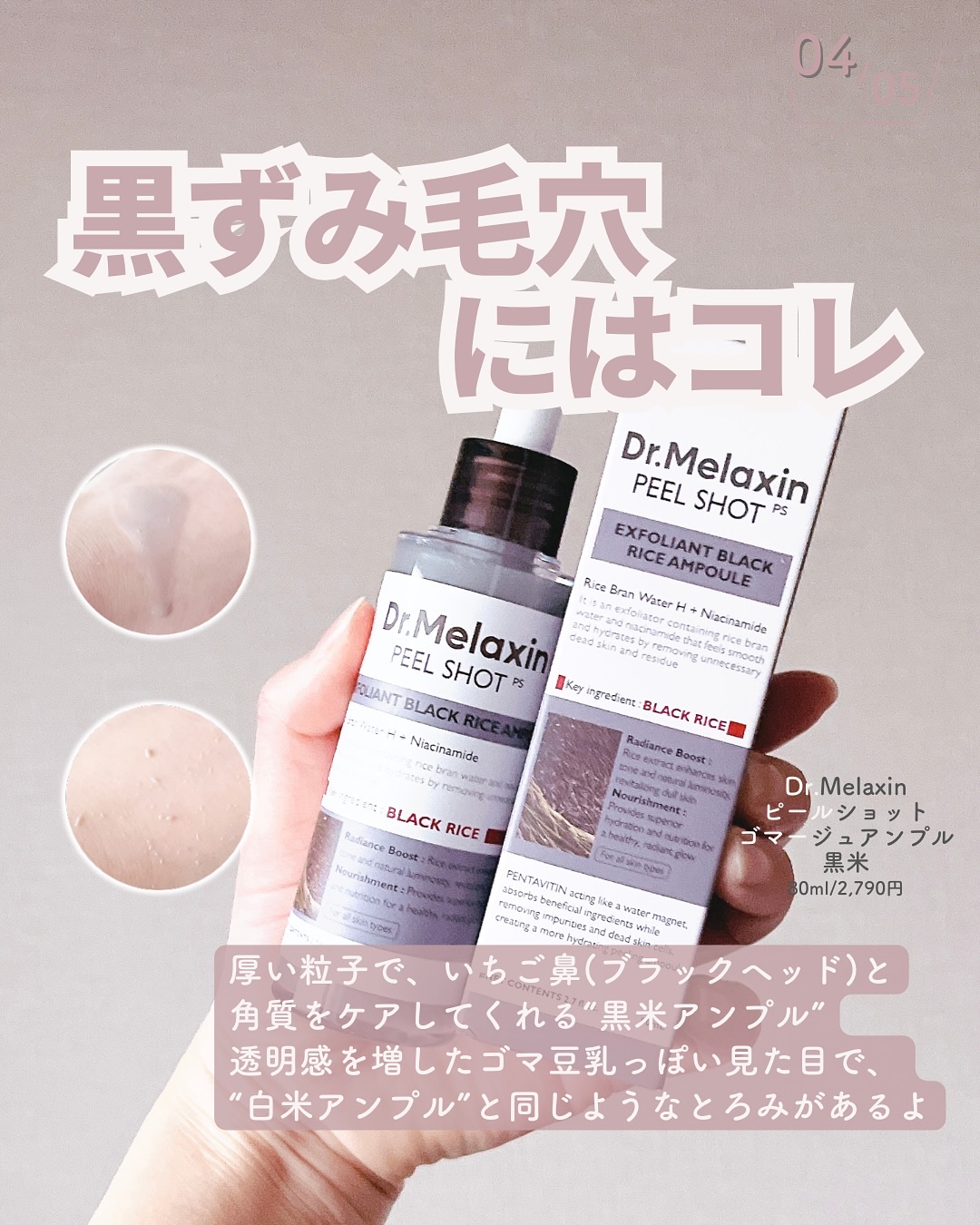 Dr.Melaxin(ドクターメラクチン)様よりいただきました🍀新しいカテゴリー✨ピーリング美容液✨白米ピールショットゴマージュアンプル‹80ml›黒米ピールショットゴマージュアンプル‹80ml›白米・黒米から作られたピーリングとアンプルを兼...