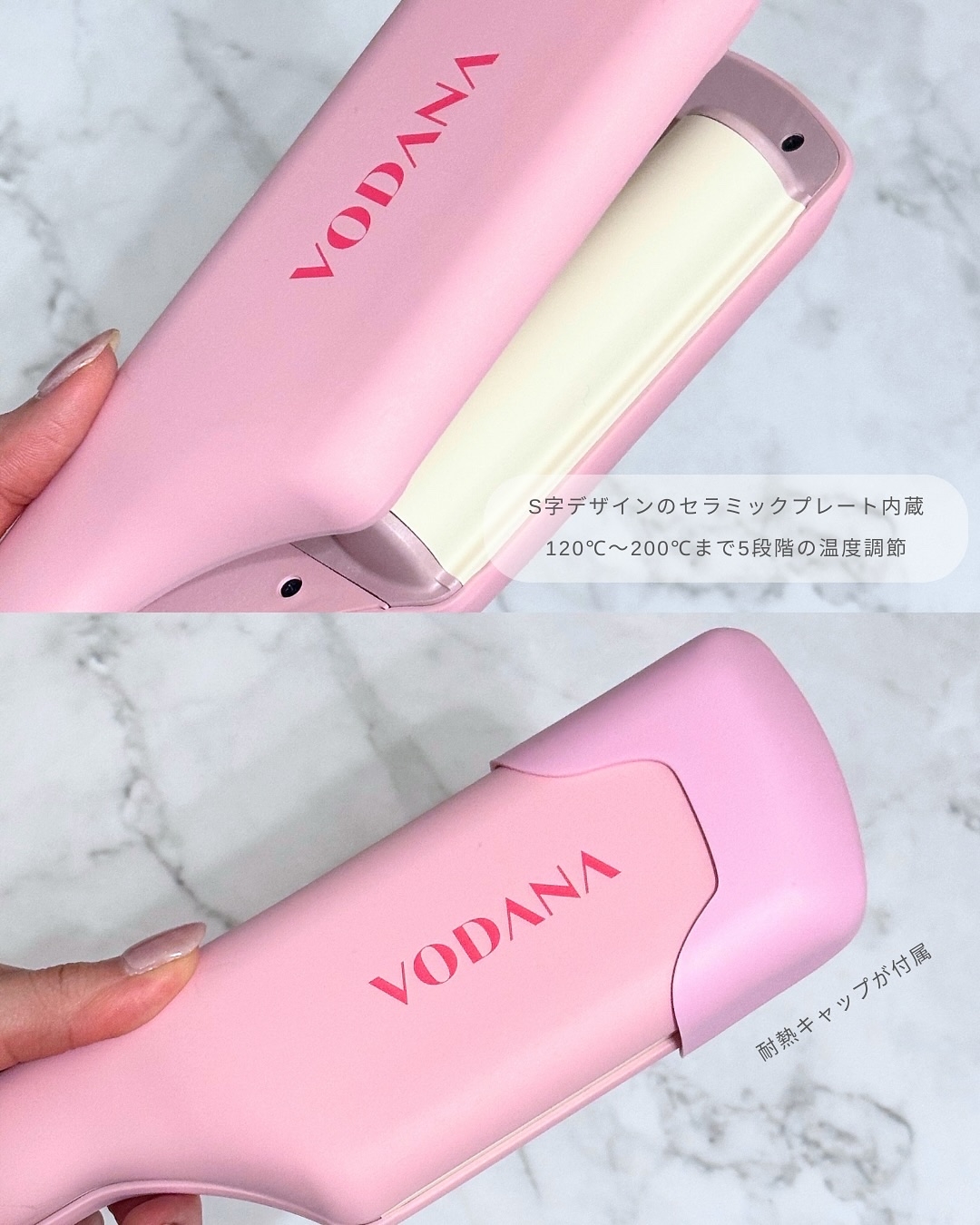 VODANAトリプルフローウェーブアイロン(32mmPinkVanilla)挟むだけでかんたんにウェーブヘアが作れるウェーブアイロン💗S字デザインのプレートが内蔵されていてウェーブを付けたい部分を挟むだけ🙌🏻✨好きな位置にずらして、カールをつ...