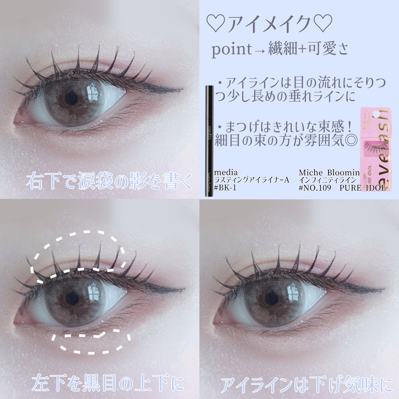 🪄🫧黒髪ブルベ優勝 儚げデートメイク🎀﹋﹋﹋﹋﹋﹋﹋﹋﹋﹋﹋﹋﹋﹋﹋☁ブルベ冬/夏☁☁混合肌☁💘こだわりぽいんと💘☁素材を生かす! ⇢儚げな女の子は濃いメイクよりも薄めのナチュラルメイクのイメージなので、素材を生...