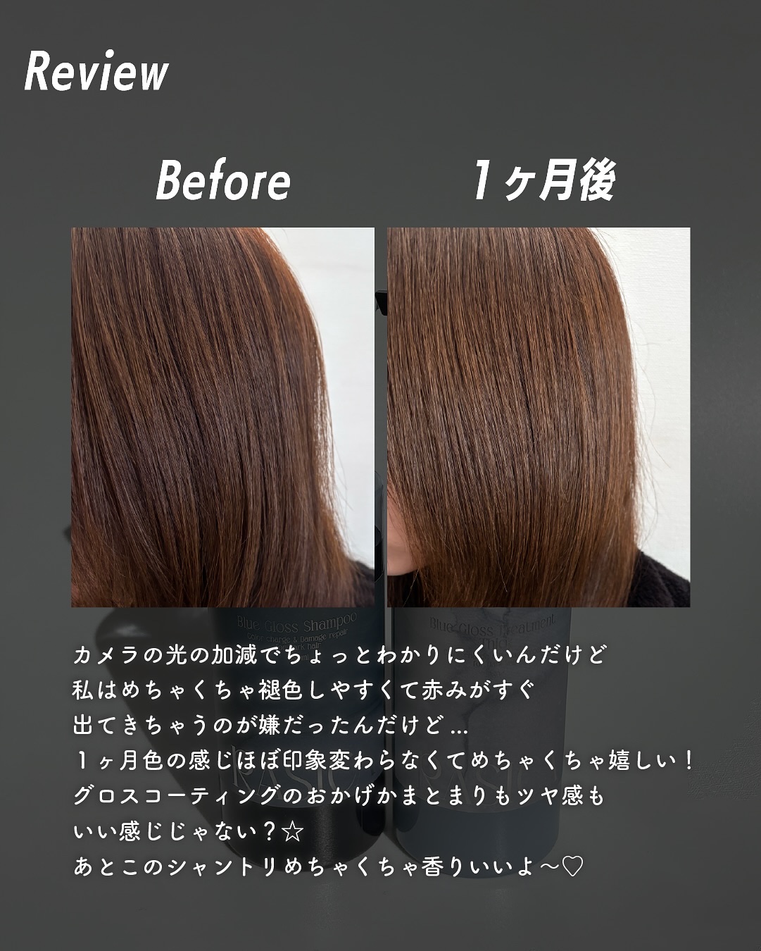 暗髪専用“ブルーシャンプー💙 最近は娘も小さいから頻繁には美容院行けず 暗髪にすること多いんだけど色落ち早くて こちらのシャンプー&トリートメント!!暗いのに透けるような赤みのないカラー 光を反射するツヤ 毛先までちゅるんとまとまる プラムベリームスクの香りでいいにおい💐 楽天・Amazon・ZOZOCOSMEで販売中だよ◎