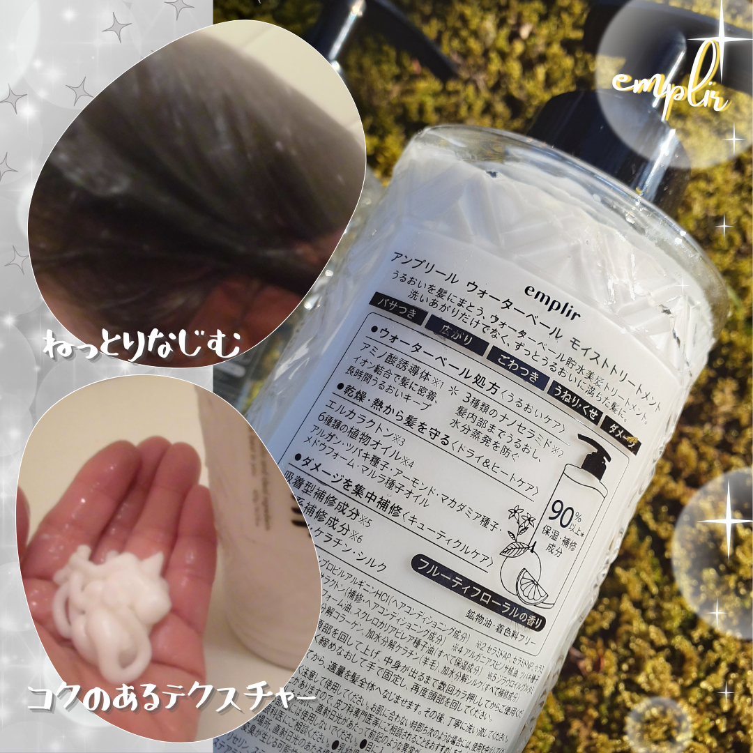 emplir(アンプリール)ウォーターベールモイストシャンプー/モイストトリートメント/モイストヘアオイル髪にまとう、至福のうるおい。うるおいを保ち、髪を守る“ウォーターベール貯水美髪”水分蒸発から髪を守り、うるおいを長時間キープする、アンプ...