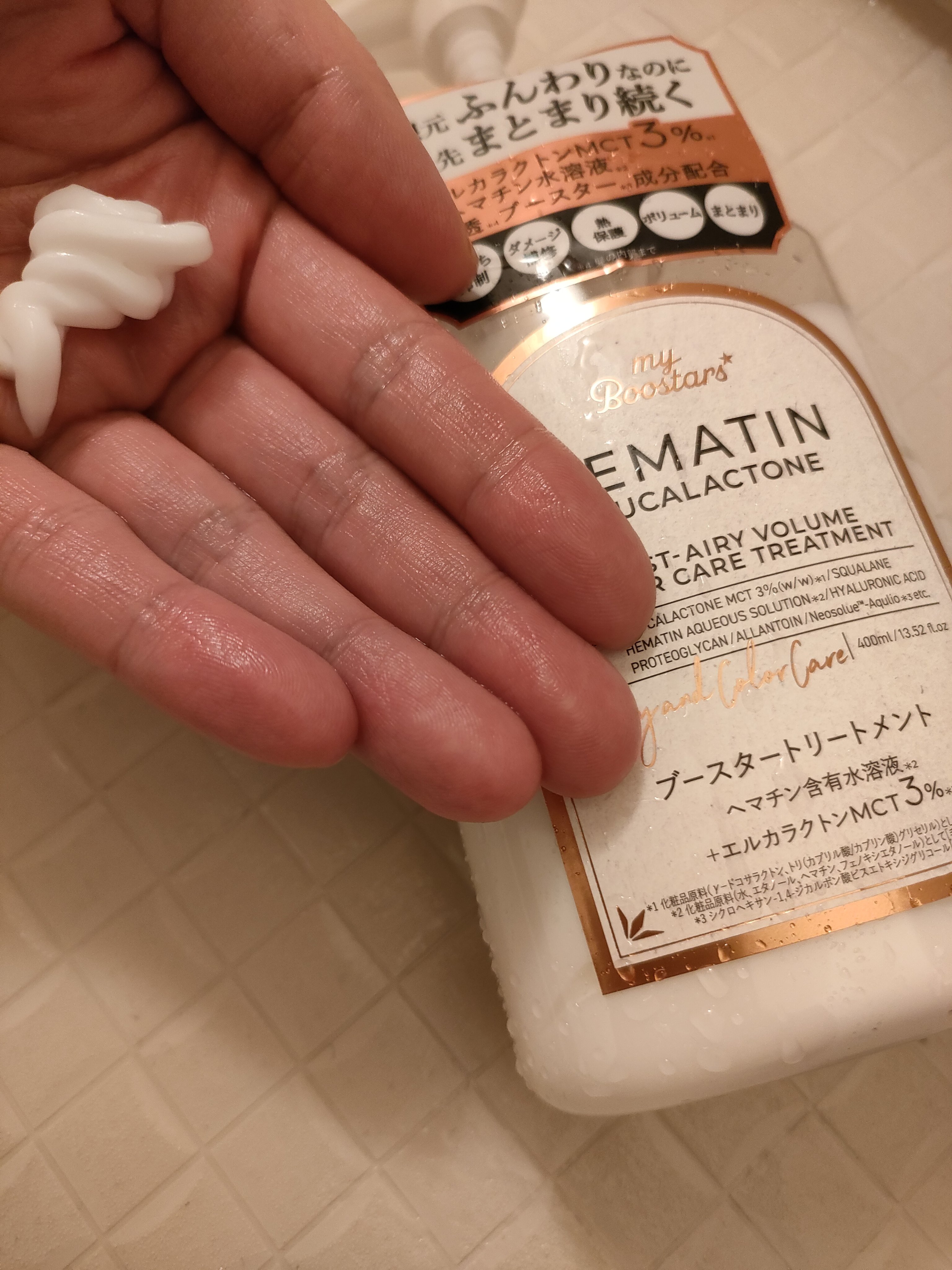 - カラーの色もちをサポートしてふんわり髪へ導く、ヘマチン(*1)配合シャンプー。根元ふんわりなのに、毛先のまとまりが続きます。ペアー&ムスクの香り。 ●ヘマチンブースト エアリー&カラーケア処方: 【ヘマチン(*1)】カラーした髪の色もちをサポート、乾燥ダメージを受けた髪を補修する 【ブースター(*2)】美容液成分(*1)の髪内部への浸透(*3)を助ける ●サルフェート・シリコーン・パラベン・鉱物油・合成着色料フリー *1 ヘマチン[毛髪補修成分] *2 シクロヘキサン-1,4-ジカルボン酸ビスエトキシジグリコール[保湿成分] *3 髪の内部まで カラーの色もちをサポートしてふんわり髪へ導く、ヘマチン(*1)配合トリートメント。根元ふんわりなのに、毛先のまとまりが続きます。ペアー&ムスクの香り。 ●ヘマチンブースト エアリー&カラーケア処方: 【ヘマチン(*1)】カラーした髪の色もちをサポート、乾燥ダメージを受けた髪を補修する 【γ-ドコサラクトン(*2)】熱反応する菜種由来の油が髪を補修してまとまりを維持する 【ブースター(*3)】美容液成分(*1)の髪内部への浸透(*4)を助ける ●サルフェート・パラベン・鉱物油・合成着色料フリー *1 ヘマチン[毛髪補修成分] *2 毛髪補修成分 *3 シクロヘキサン-1,4-ジカルボン酸ビスエトキシジグリコール[保湿成分] *4 髪の内部まで
