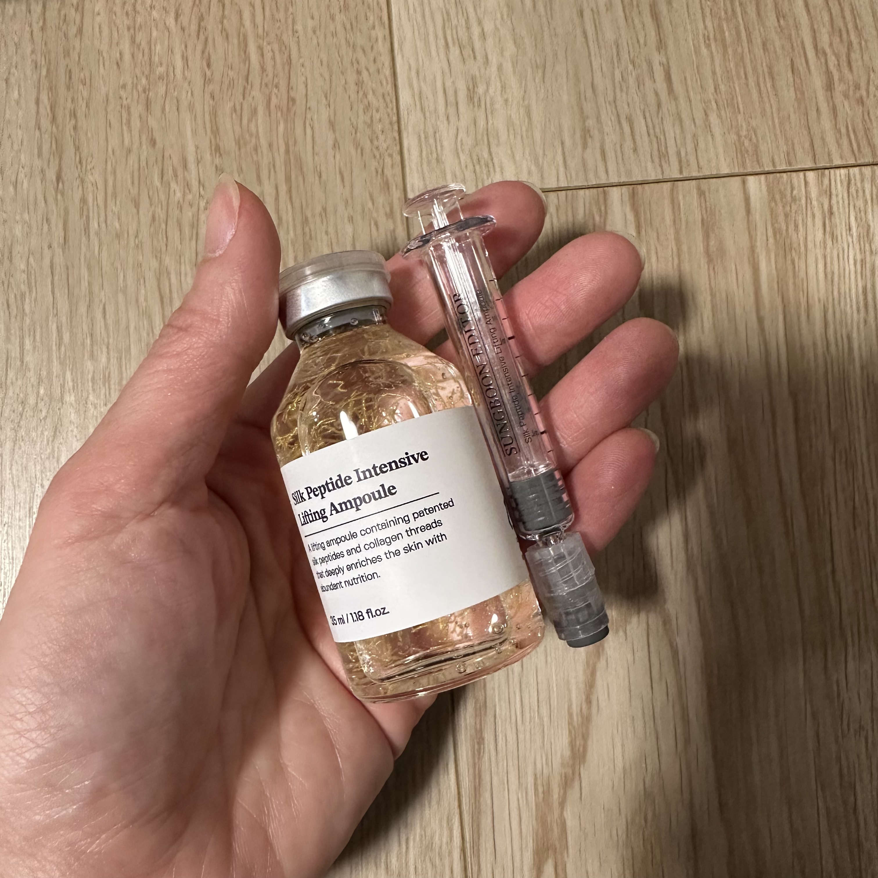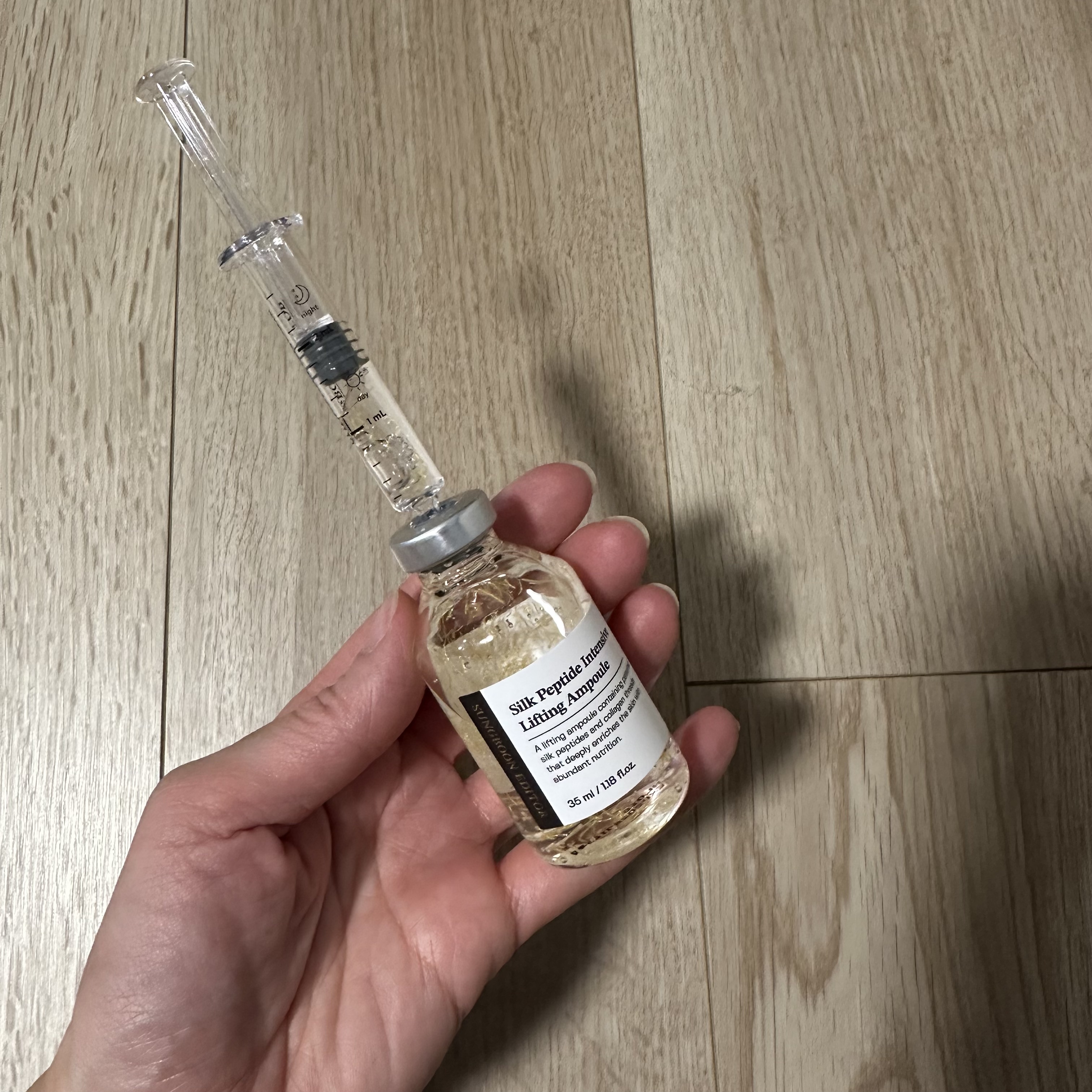 OLIVEINTERNATIONALシルクペプチドインテンシブリフティングアンプルを使ってみました。注射器型にデザインされたアンプル✓より便利に注射器型の容器を使って細かい量の調節✓より衛生的に注射器型の容器で外部からの汚れを防ぐデザインシル...