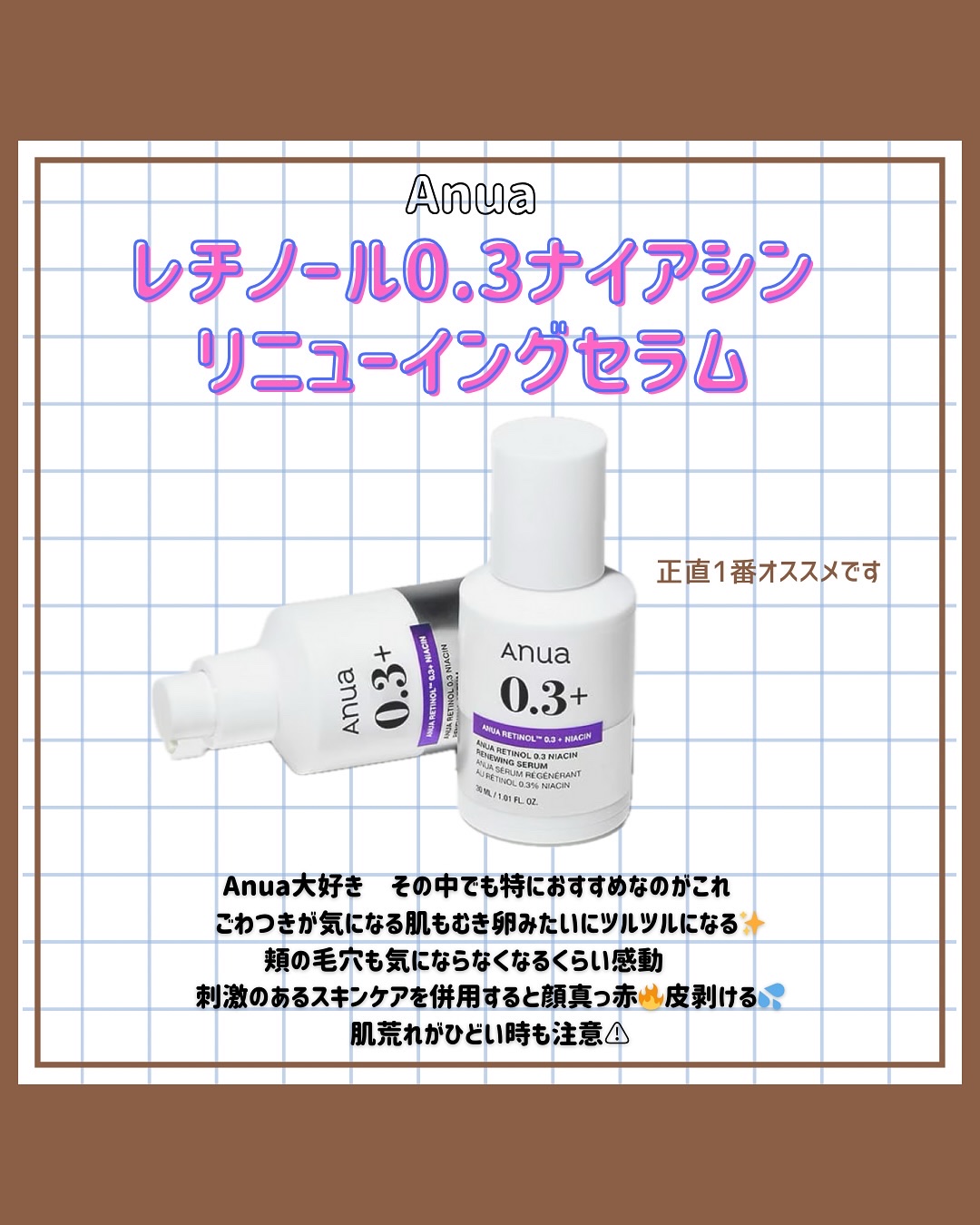 Anua レチノール0.3 ナイアシンリニューイングセラム | 3,200円 |