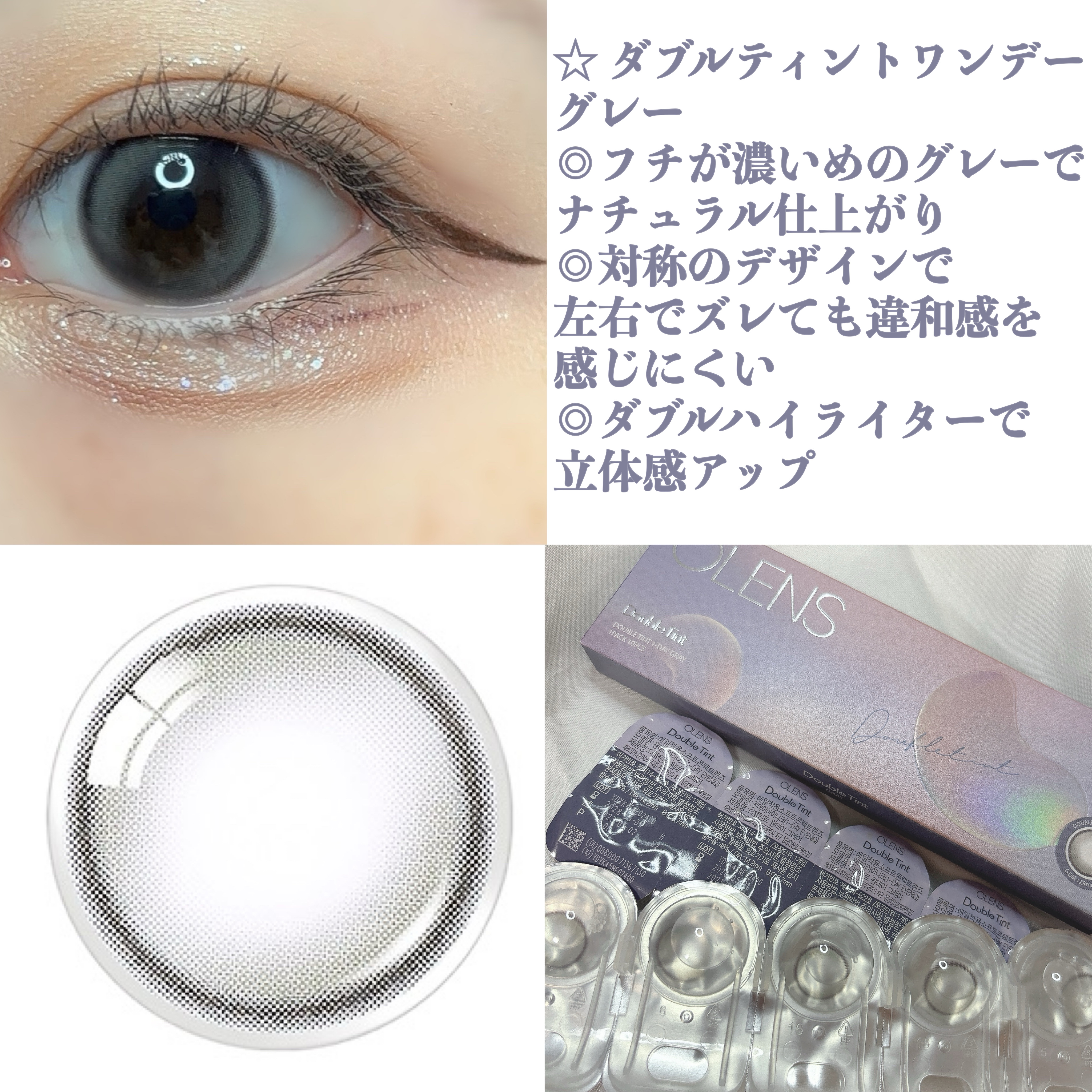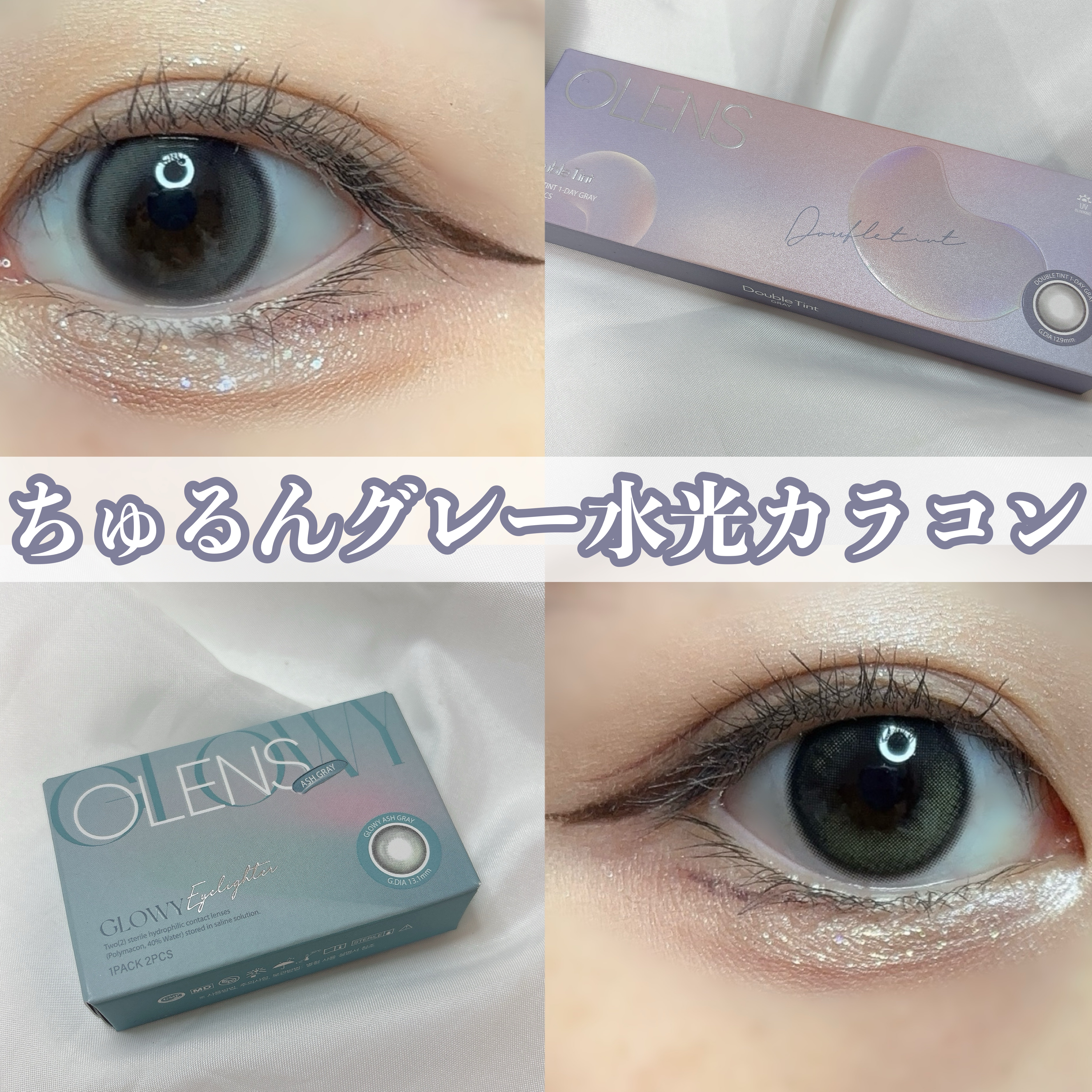 \ちゅるんと見える、水光レンズ🫧/☁️OLENS🛒DoubleTint1dayGRAY/BROWN📍DIA:14.2mm📍BC:8.6mm📍着色直径:12.9mm透明感たっぷりのダブルハイライター。ハイライターレンズって、目の中で回って左右非...