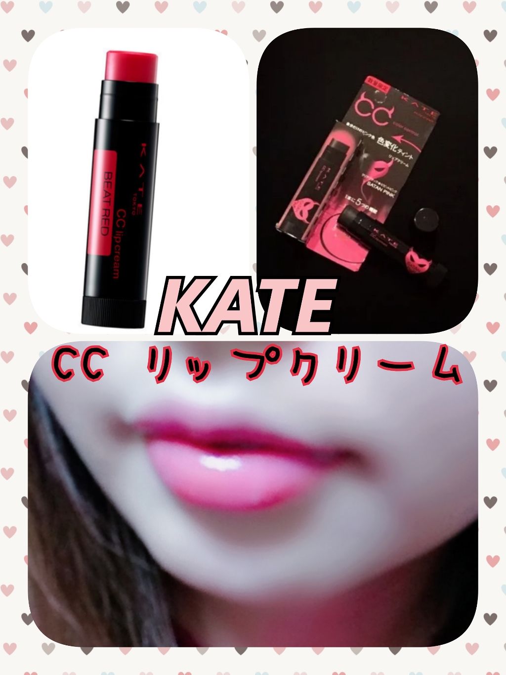 ①⌘KATECCリップクリーム03ヌーディストピンク⌘②⌘KATECCリップクリーム01ビートレッド⌘③⌘KATECCリップクリーム08スノウグリーン⌘3つとも¥480(税抜)のレビューをしていきたいと思いますっ!2枚目の画像の①右上②左下③...