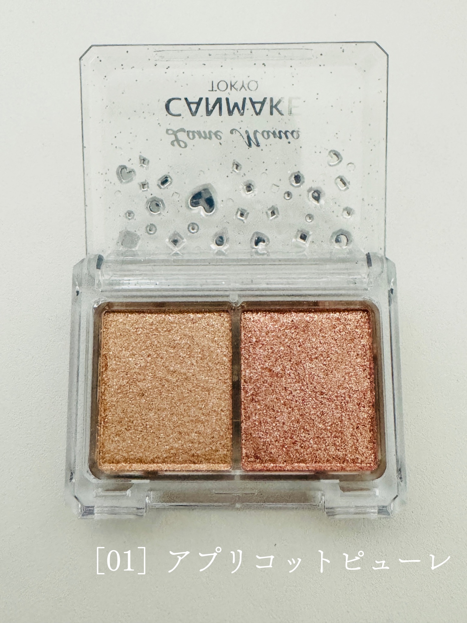 - ※03は2025年11月下旬よりロフト・プラザで先行発売。2026年3月下旬発売予定で2026年4月以降定番導入予定となります。 自分の気持ちを上げる♪ キャンメイク史上最もキラキラ!?ご褒美級ラメシャドウ✨ 高輝度、高密着! ラメ好きさんには是非使ってほしい✨ まるで発光しているかのように輝く大粒ラメアイシャドウです。 他のアイシャドウの上から重ねても濁らない 透明度の高いラメで、美しい輝きが楽しめます。 まるでラメの膜が張るようにぴたっと密着! ラメ飛びしにくく、キレイな仕上がりが長時間続きます。 【同系色の2色入り】 左:カラーレスメイクや、淡いアイシャドウに合わせやすいラメ 右:ほんのりベースカラーが発色する、華やかなカラーラメ